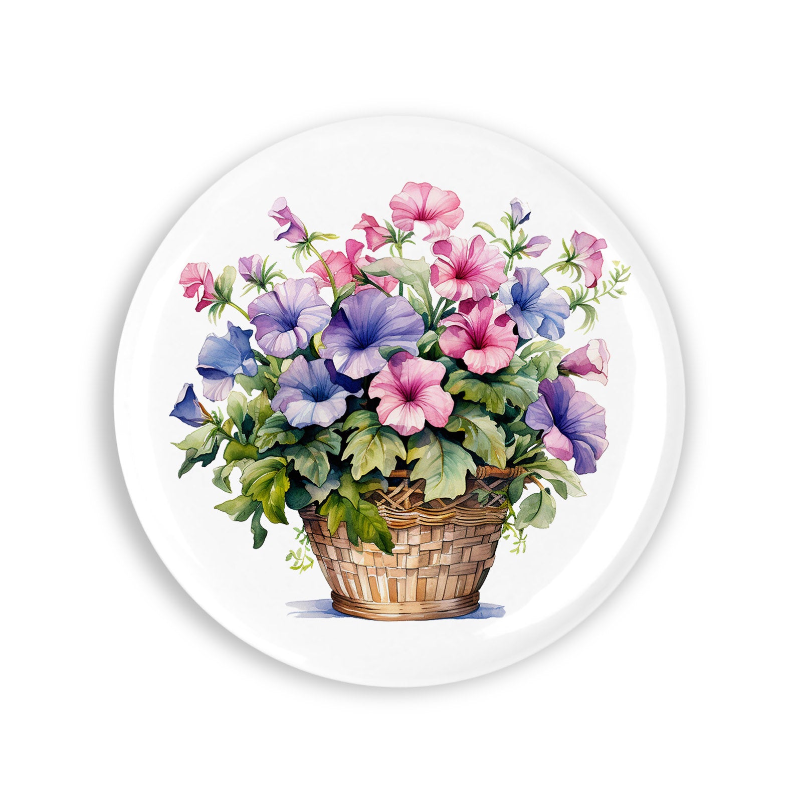 - Set 4 insigne, Cos de nuiele cu petunii roz si albastru, NO6496, Metal, 44 mm, Multicolor