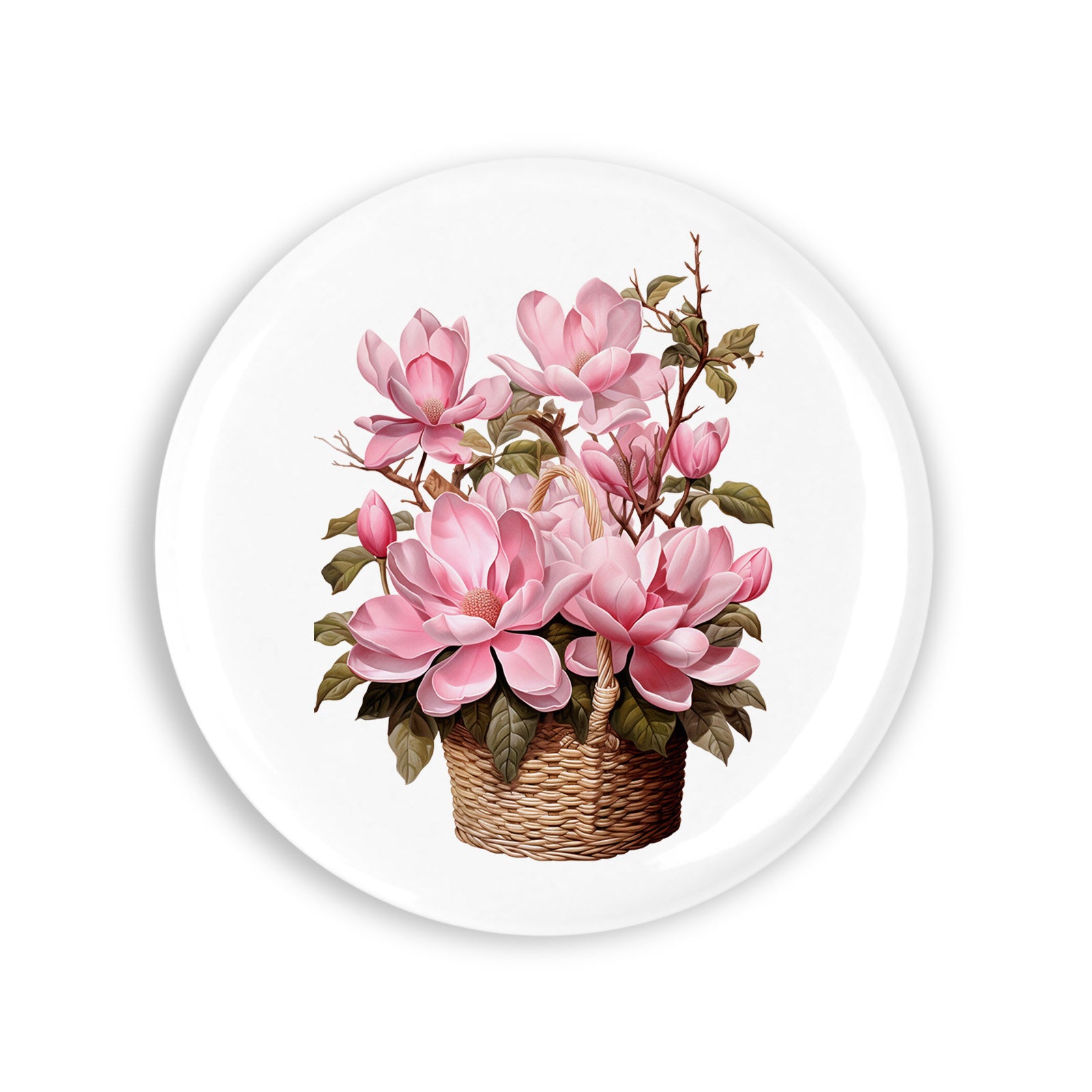 - Set 4 insigne, Cos de nuiele patrat cu magnolii, NO5423, Metal, 44 mm, Multicolor
