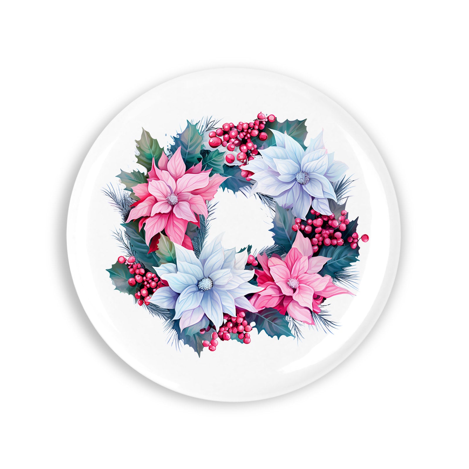 - Set 4 insigne, Craciun roz bleu Aranjament floral, NO965, Metal, 44 mm, Multicolor