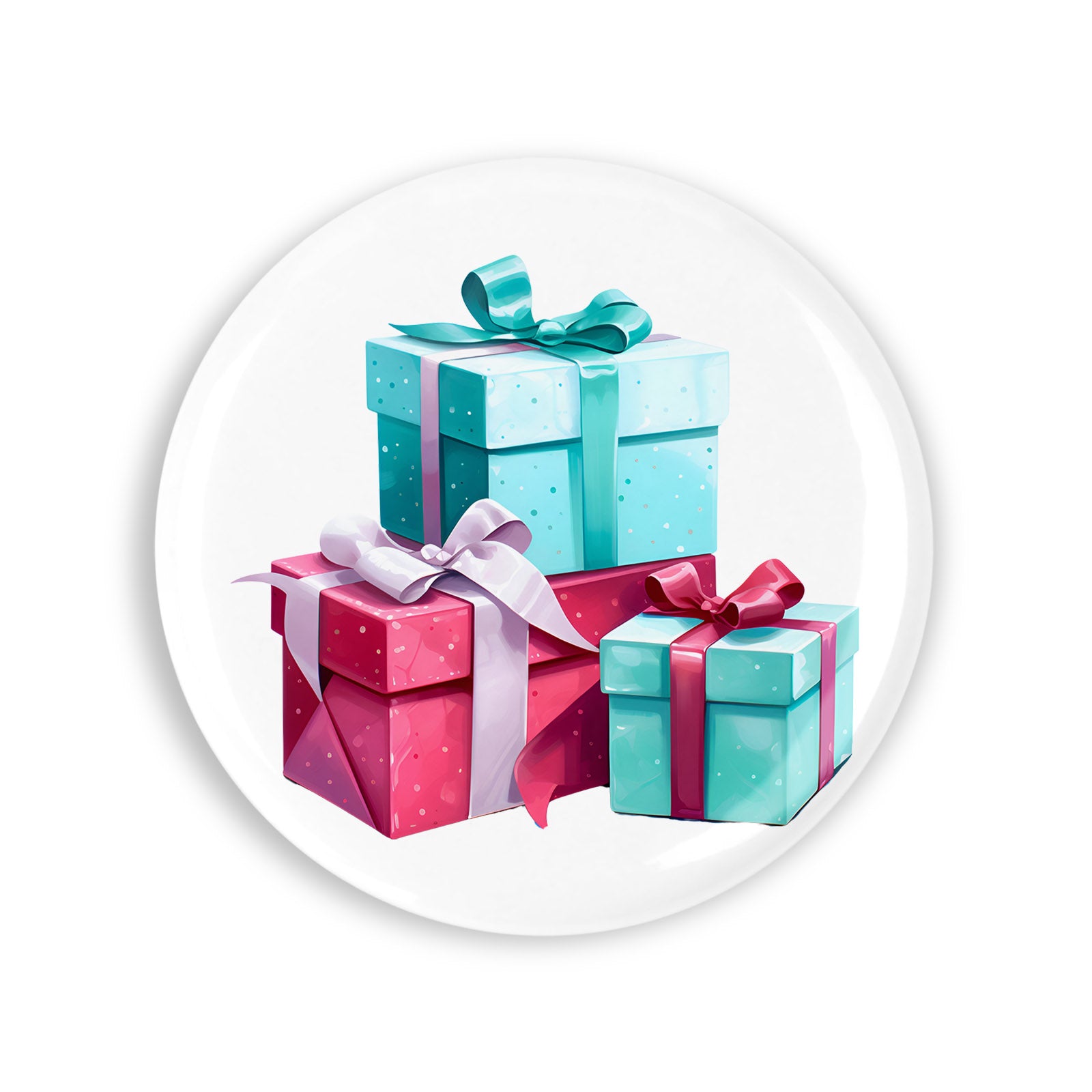 - Set 4 insigne, Craciun roz bleu Cutii de cadouri, NO6216, Metal, 44 mm, Multicolor