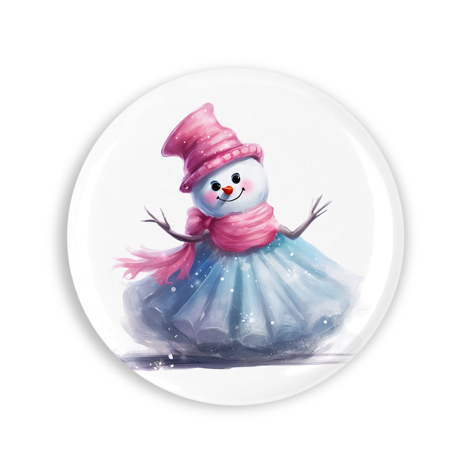 - Set 4 insigne, Craciun roz bleu Omul de zapada cu rochita, NO6515, Metal, 44 mm, Multicolor