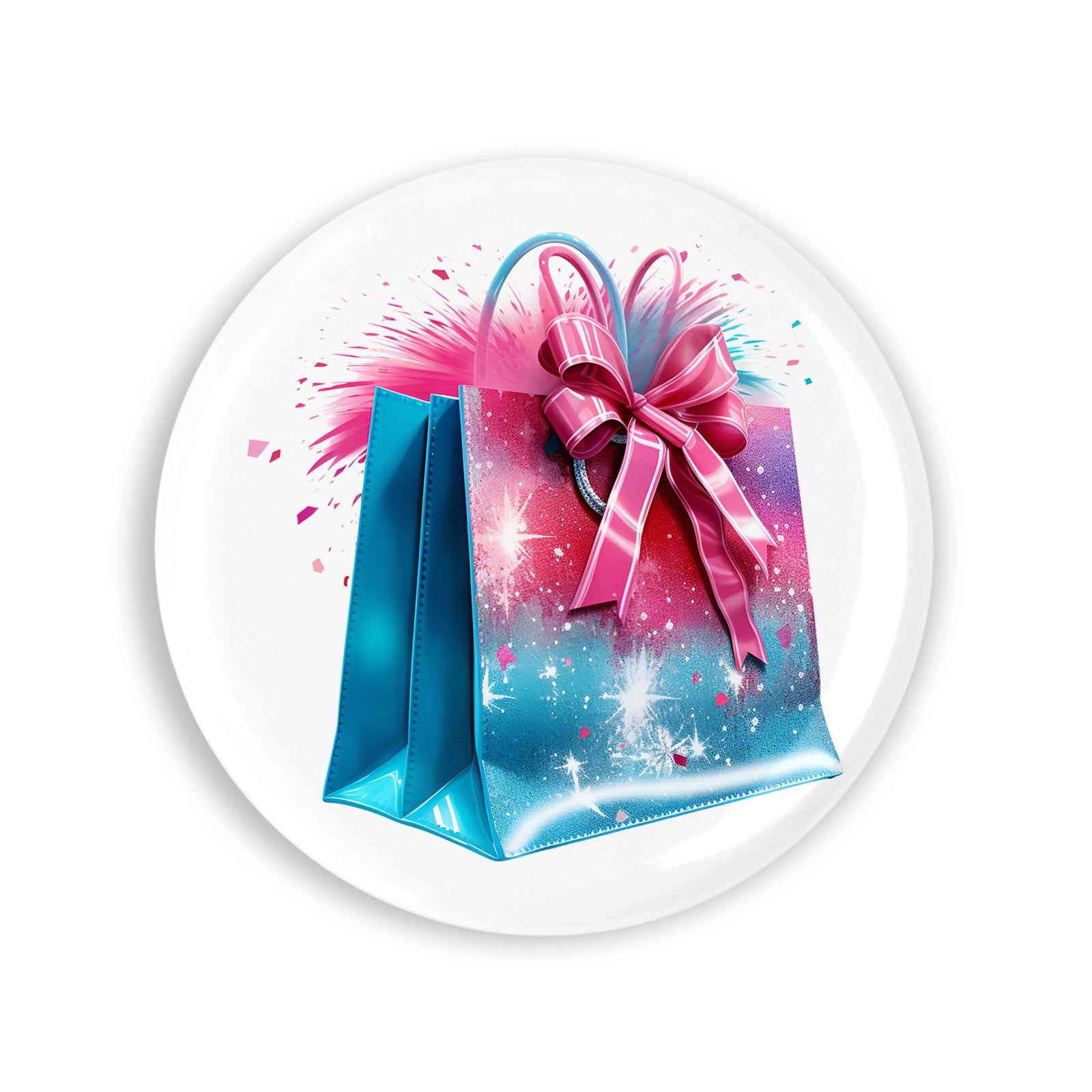 - Set 4 insigne, Craciun roz bleu Punga cu cadouri, NO2045, Metal, 44 mm, Multicolor