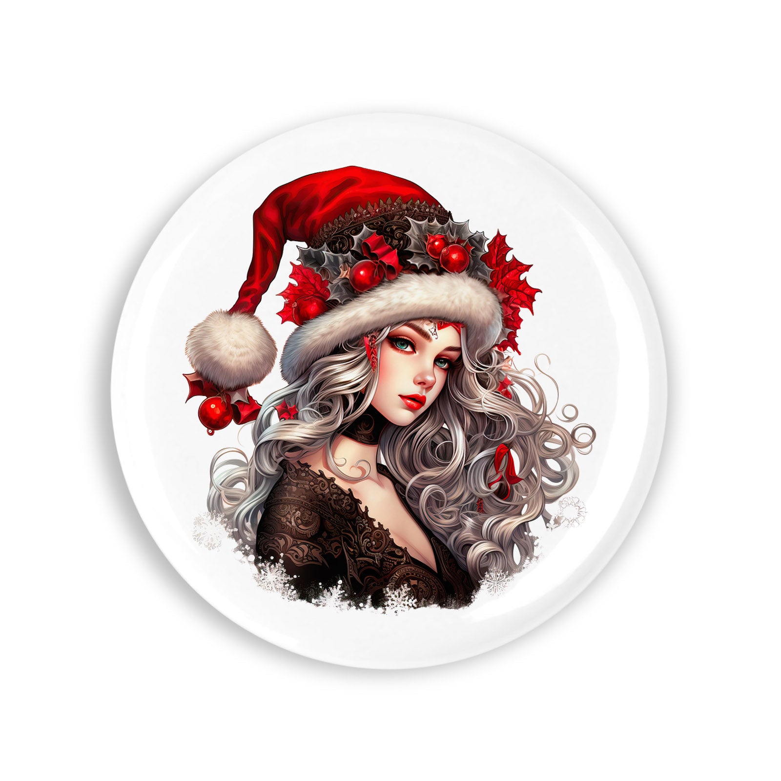 - Set 4 insigne, Craciunita cu rochie neagra, NO1030, Metal, 44 mm, Multicolor