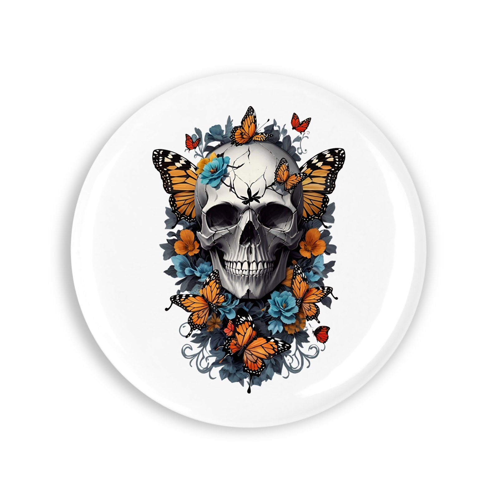- Set 4 insigne, Craniu cu fluturi, NO7017, Metal, 44 mm, Multicolor
