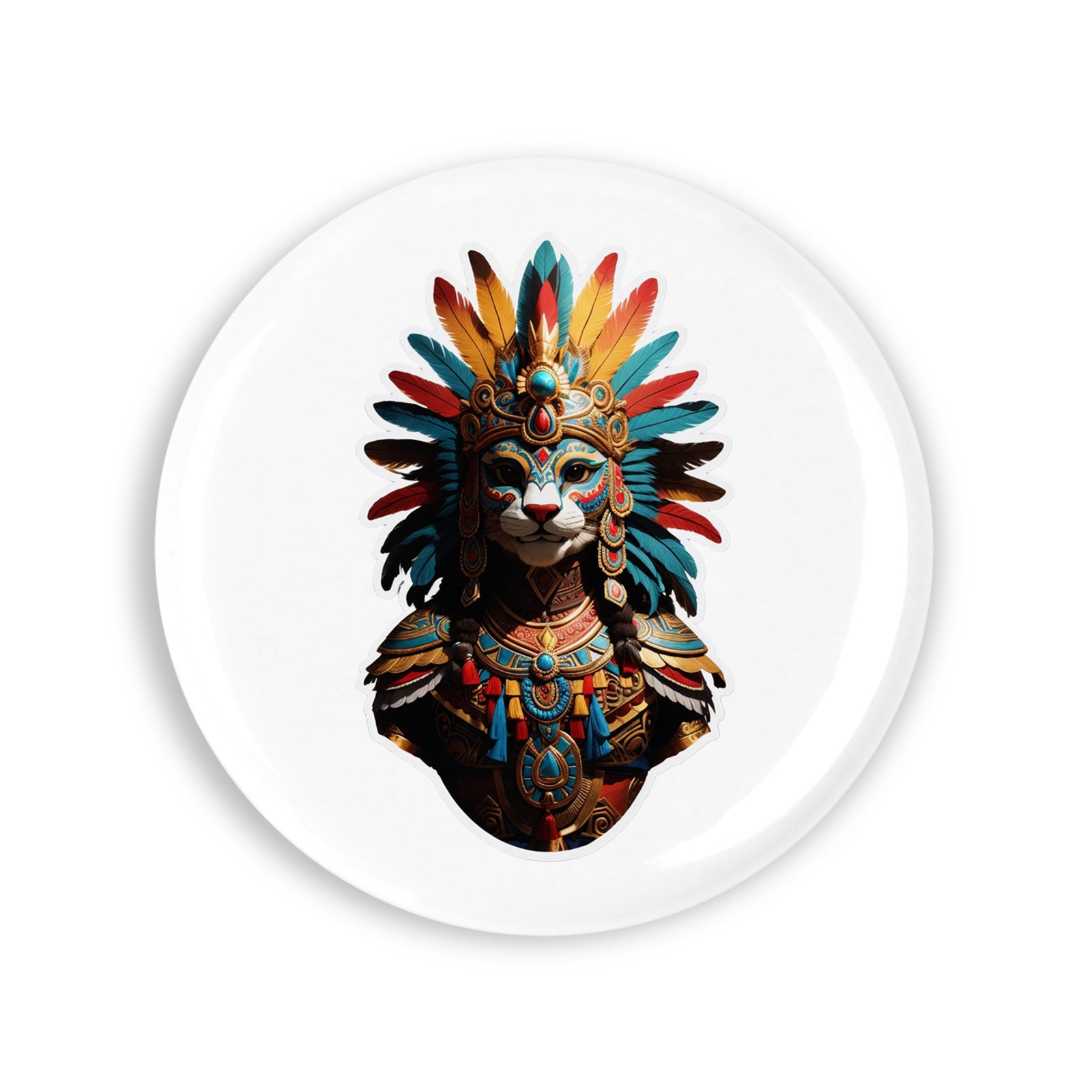 - Set 4 insigne, Creatura mitologica Cipactli cu coif din pene, NO7985, Metal, 44 mm, Multicolor
