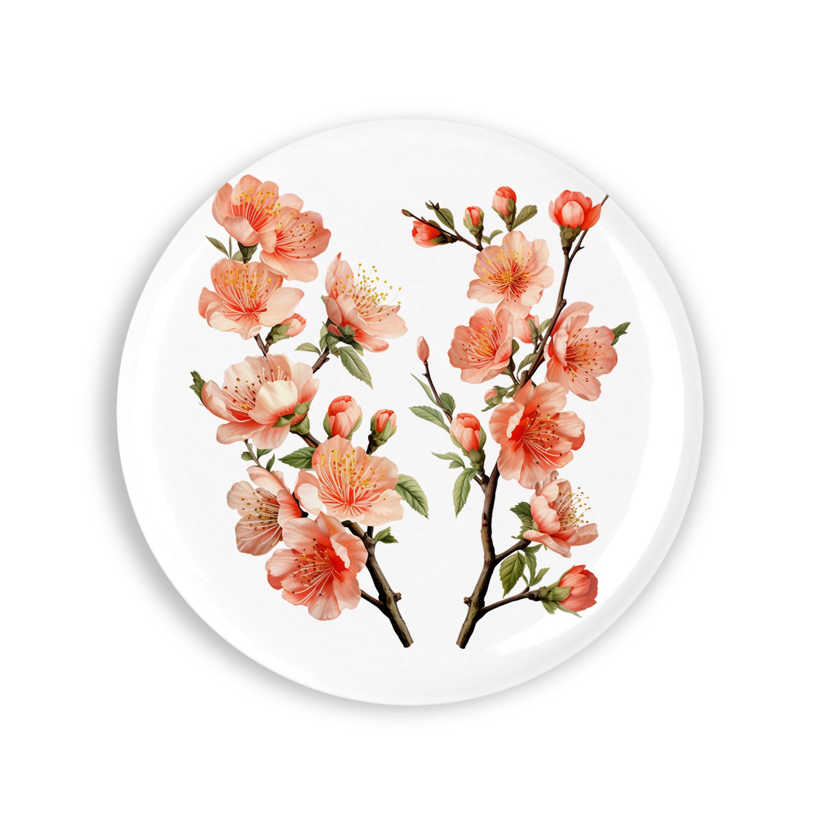 - Set 4 insigne, Crengute de piersic inflorit, NO2826, Metal, 44 mm, Multicolor