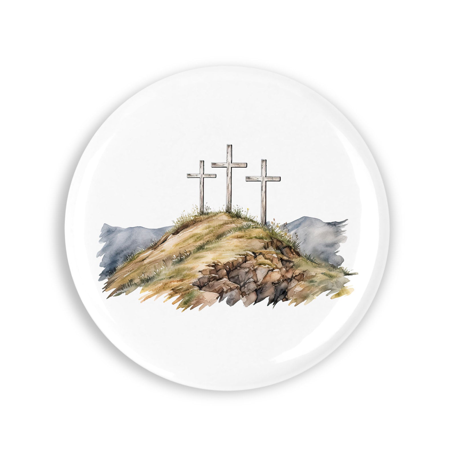 - Set 4 insigne, Cruci pe deal, NO638, Metal, 44 mm, Multicolor