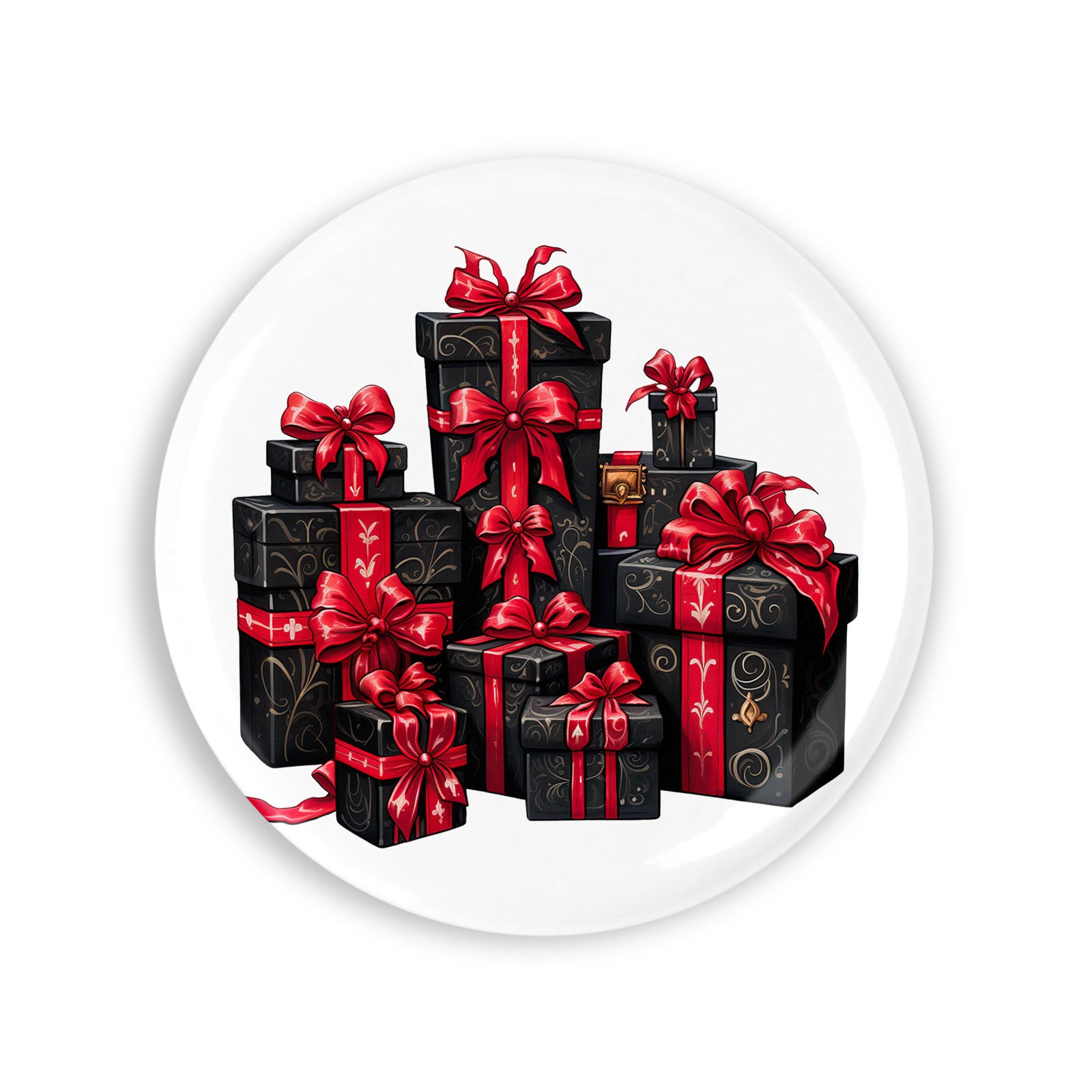 - Set 4 insigne, Cutii de cadouri negre cu funda rosie, NO878, Metal, 44 mm, Multicolor