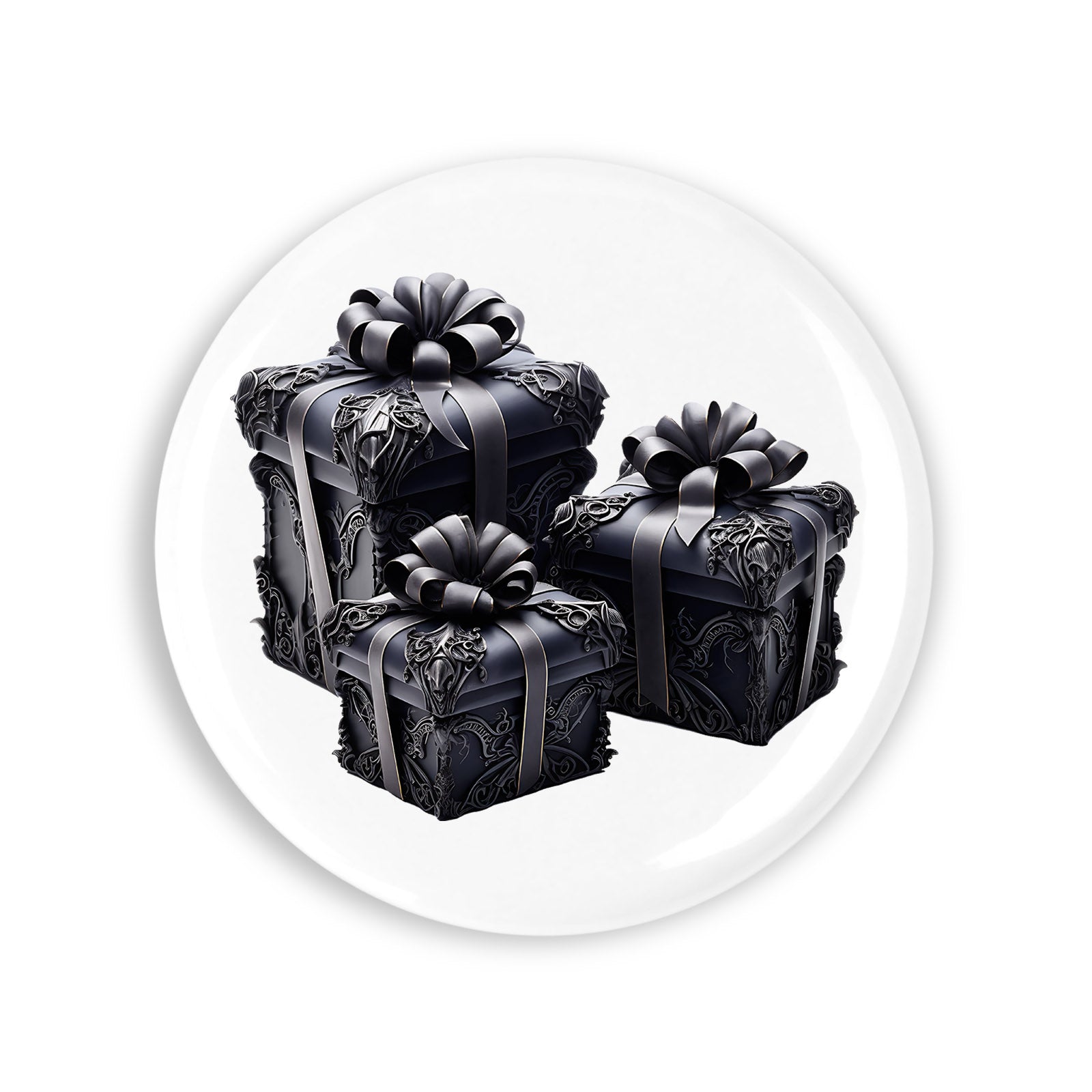 - Set 4 insigne, Cutii negre pentru cadouri, NO5790, Metal, 44 mm, Multicolor