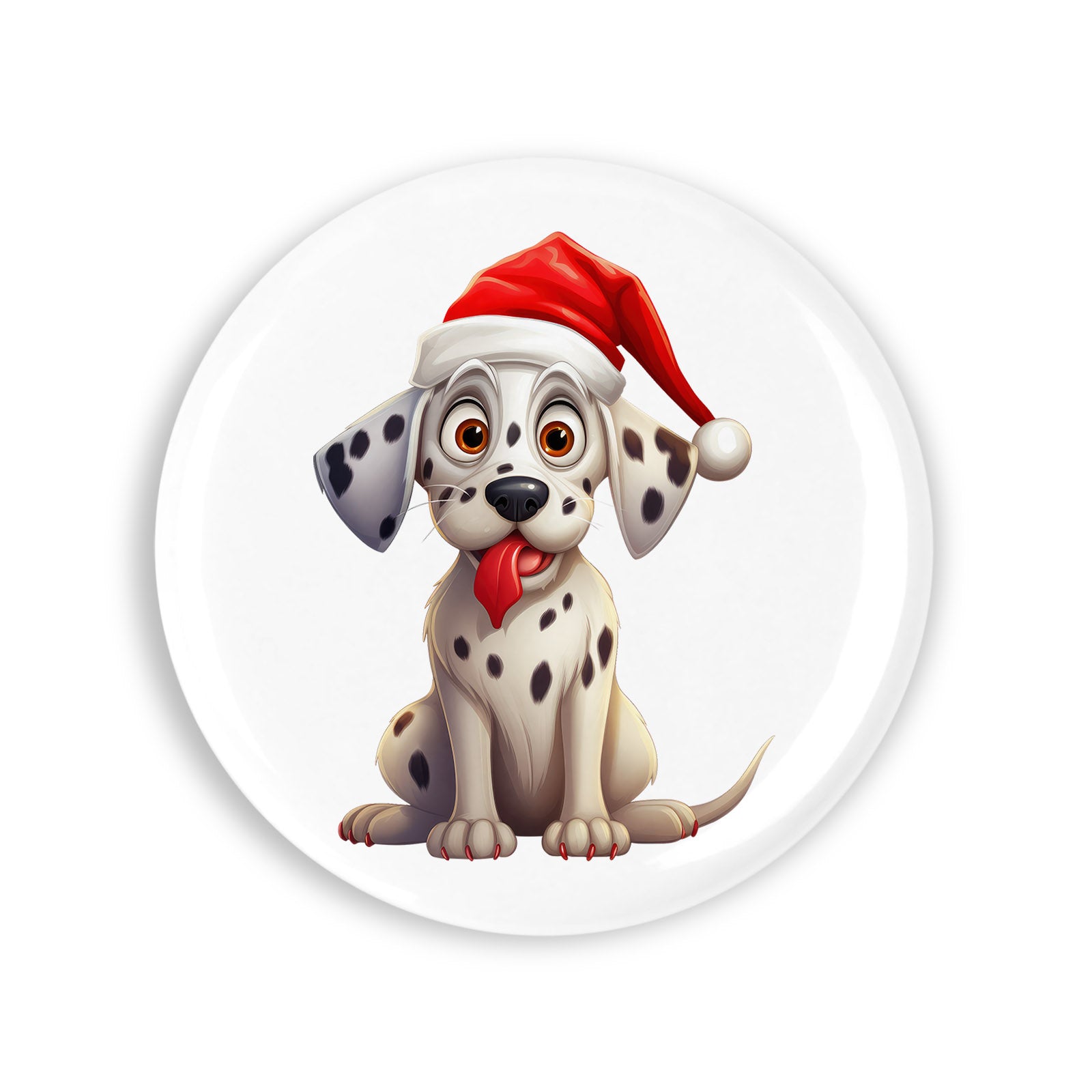 - Set 4 insigne, Dalmatian cu caciula de craciun, NO1391, Metal, 44 mm, Multicolor