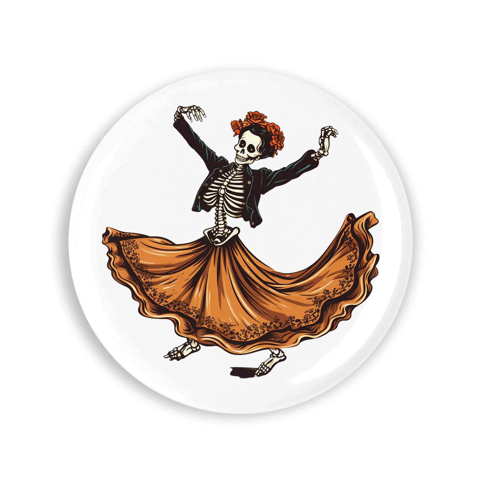 - Set 4 insigne, Dansul scheletului cu fusta maro, NO5743, Metal, 44 mm, Multicolor
