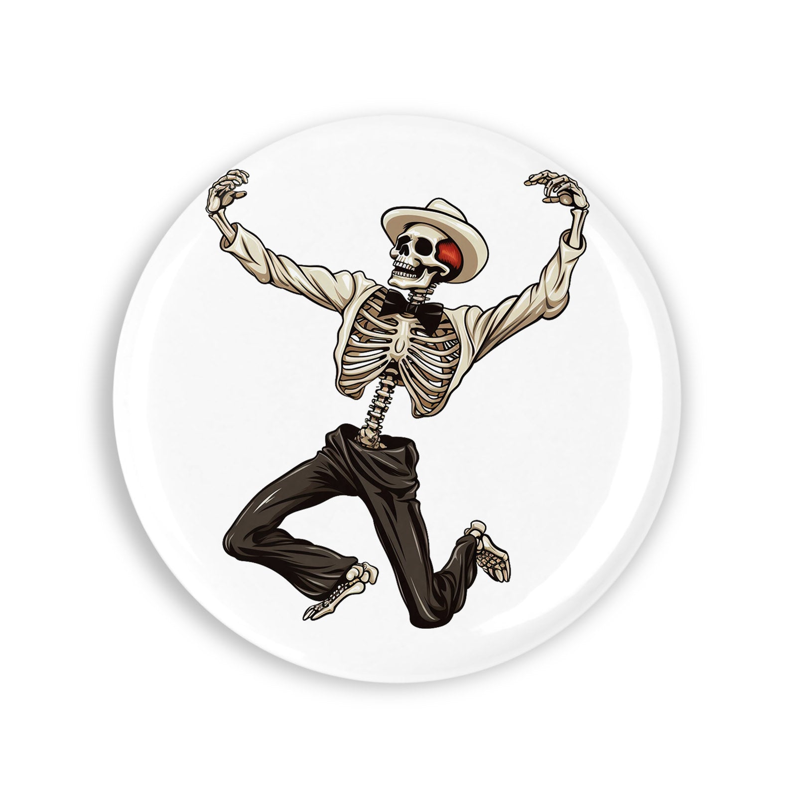 - Set 4 insigne, Dansul scheletului cu palarie alba, NO1850, Metal, 44 mm, Multicolor