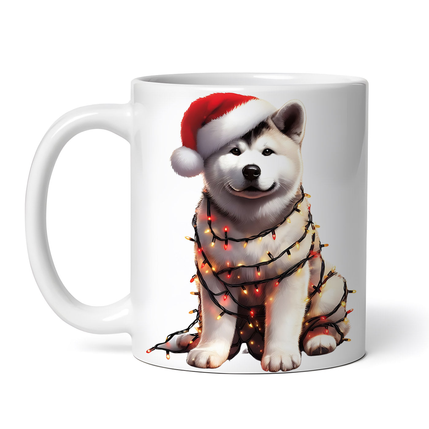 - Cana ceramica, Akita Husky de imbracat cu luminite de craciun, NO5349, 330 ml, Multicolor
