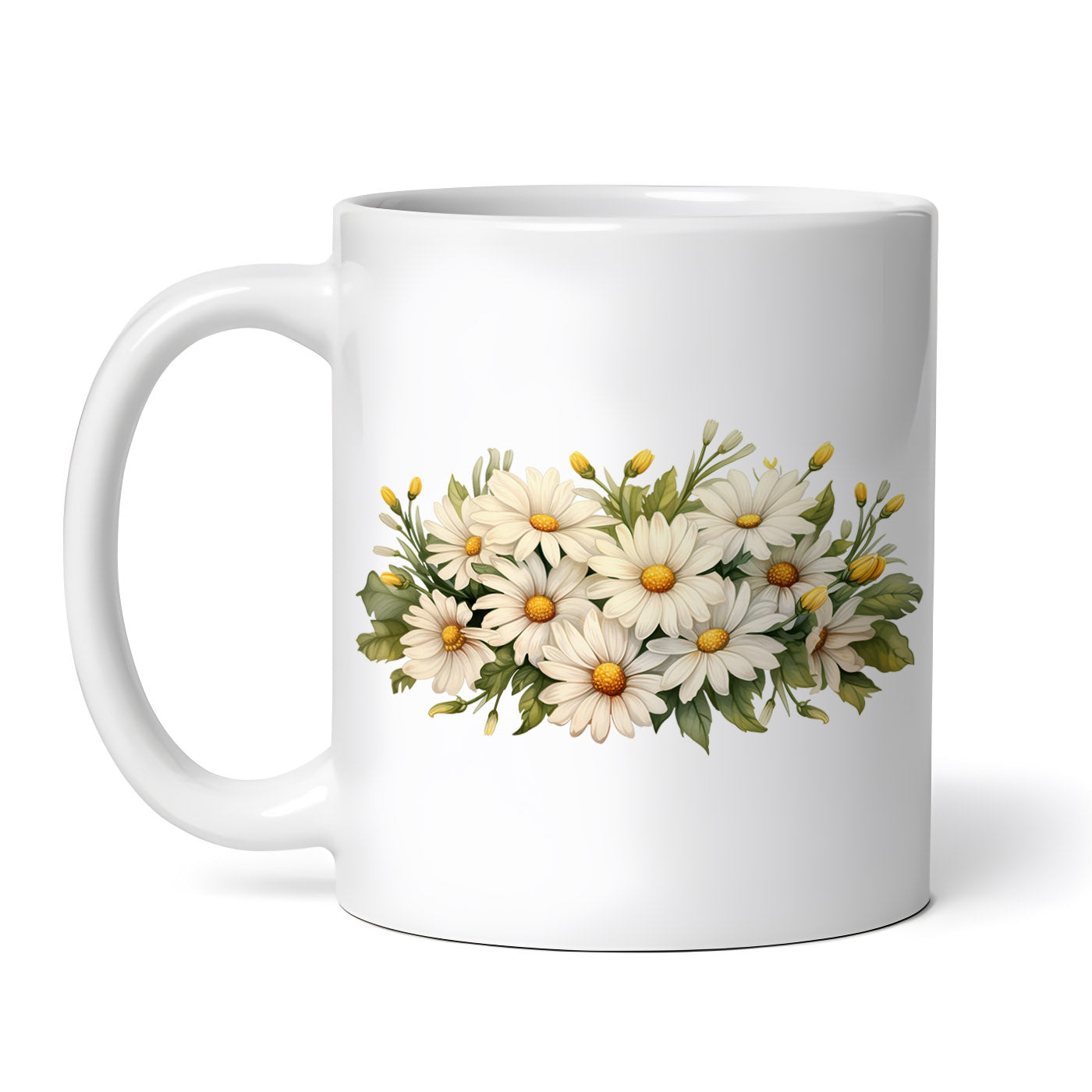 - Cana ceramica, Aranjament floral cu margarete, NO4016, 330 ml, Multicolor