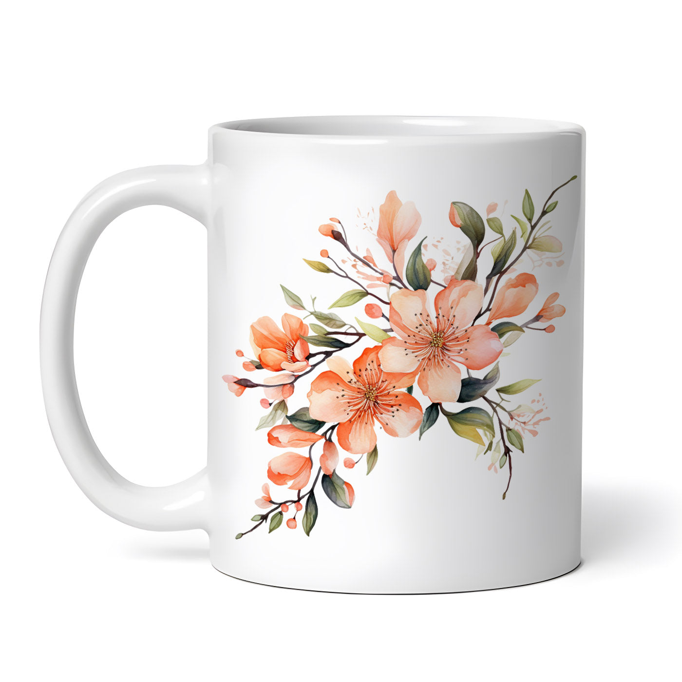 - Cana ceramica, Aranjament floral de piersic, NO5780, 330 ml, Multicolor