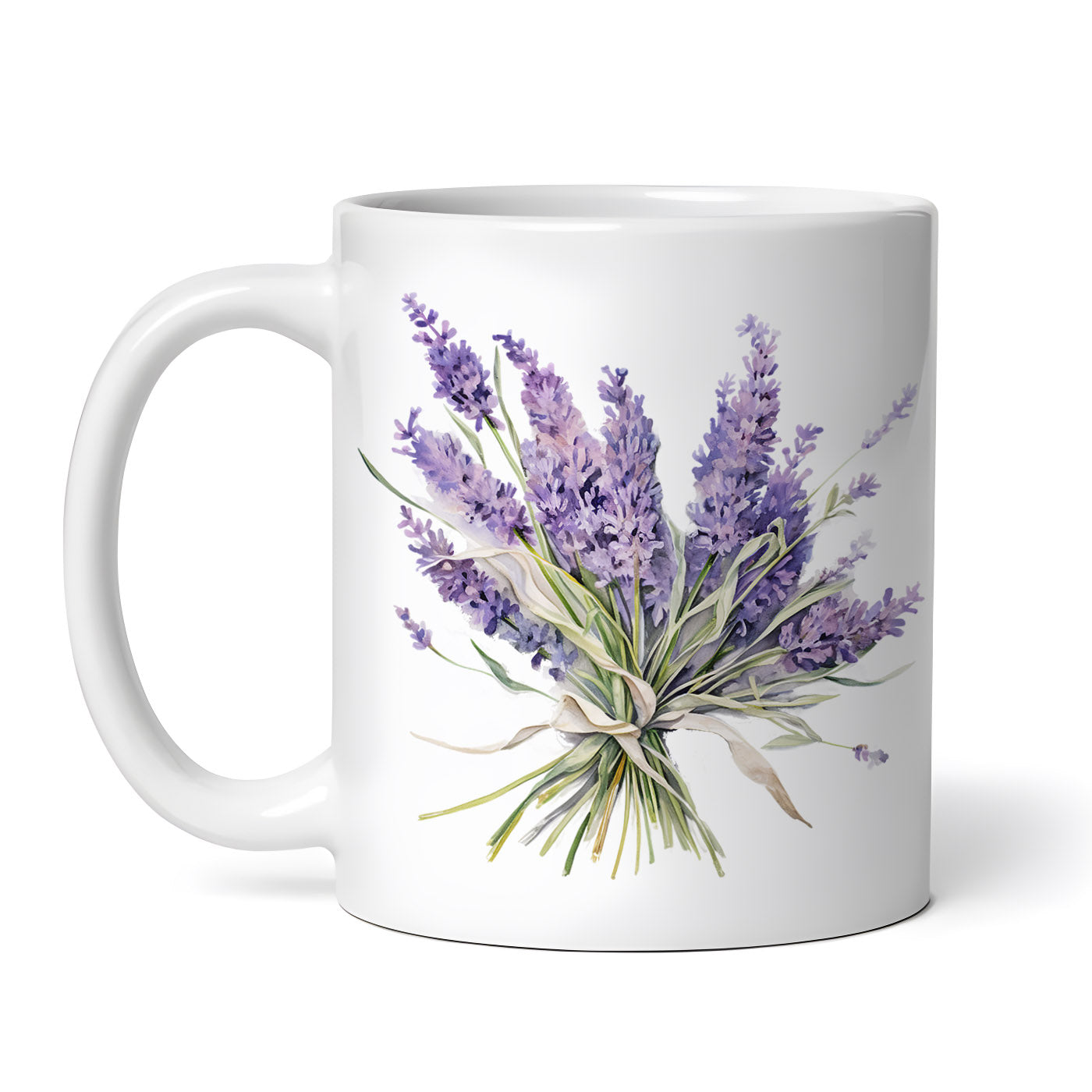 - Cana ceramica, Aranjament floral din lavanda, NO691, 330 ml, Multicolor