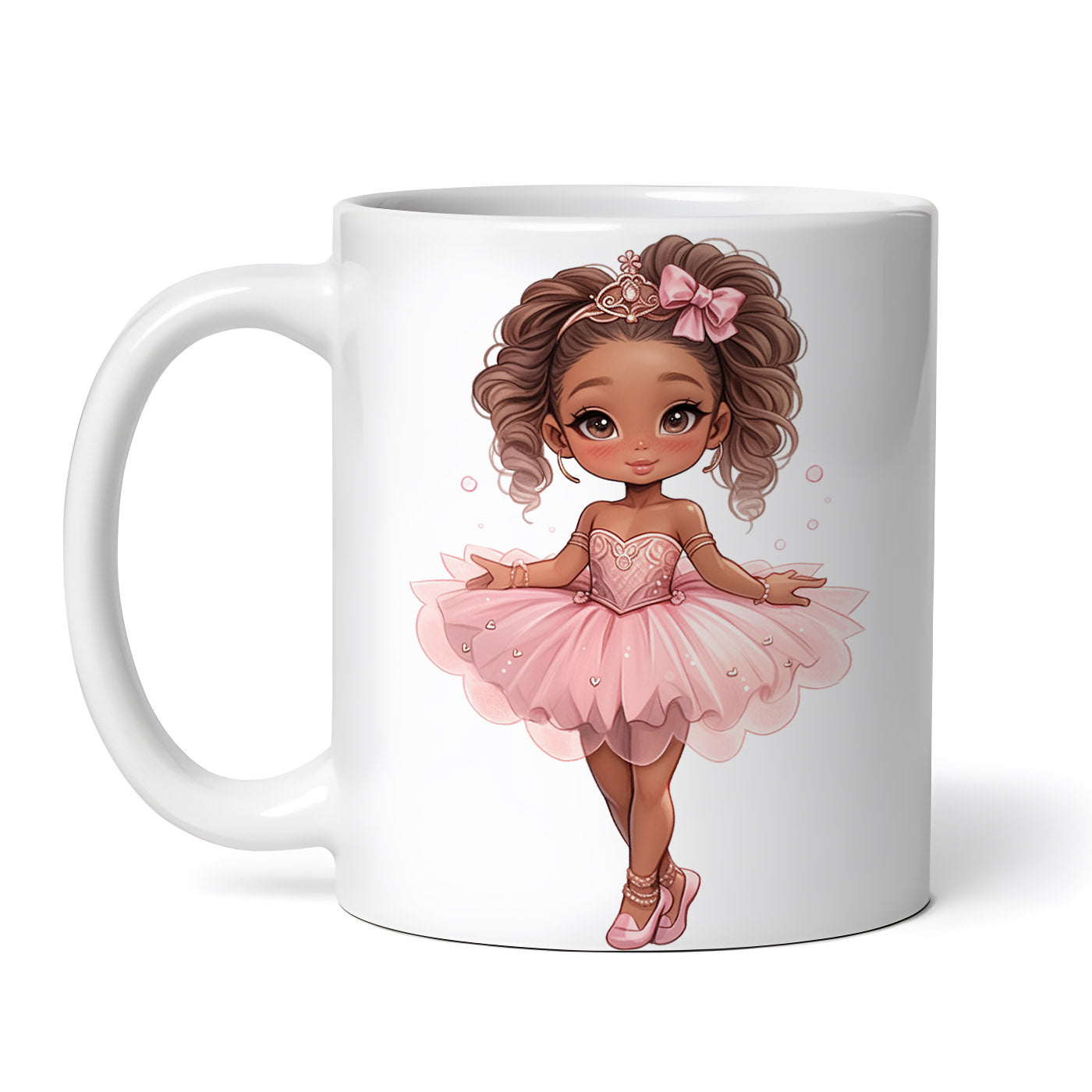 - Cana ceramica, Balerina cu funda roz in par, NO6431, 330 ml, Multicolor