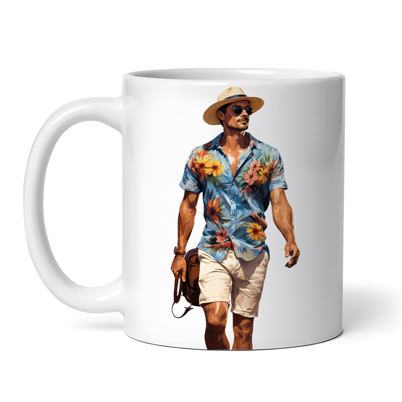 - Cana ceramica, Barbat cu pantaloni scurti bel si camasa florala belu, NO4356, 330 ml, Multicolor