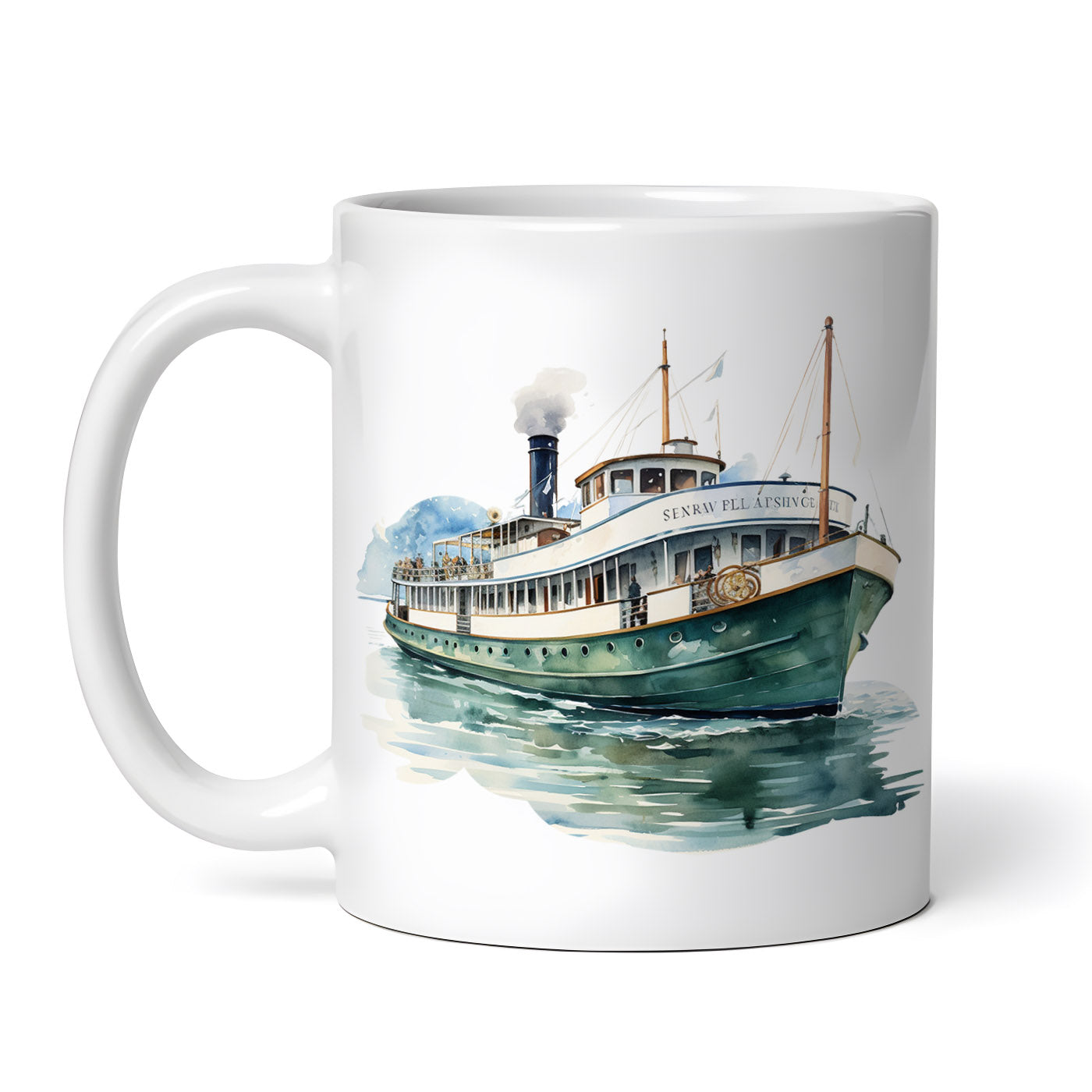 - Cana ceramica, Barca cu aburi verde, NO4894, 330 ml, Multicolor