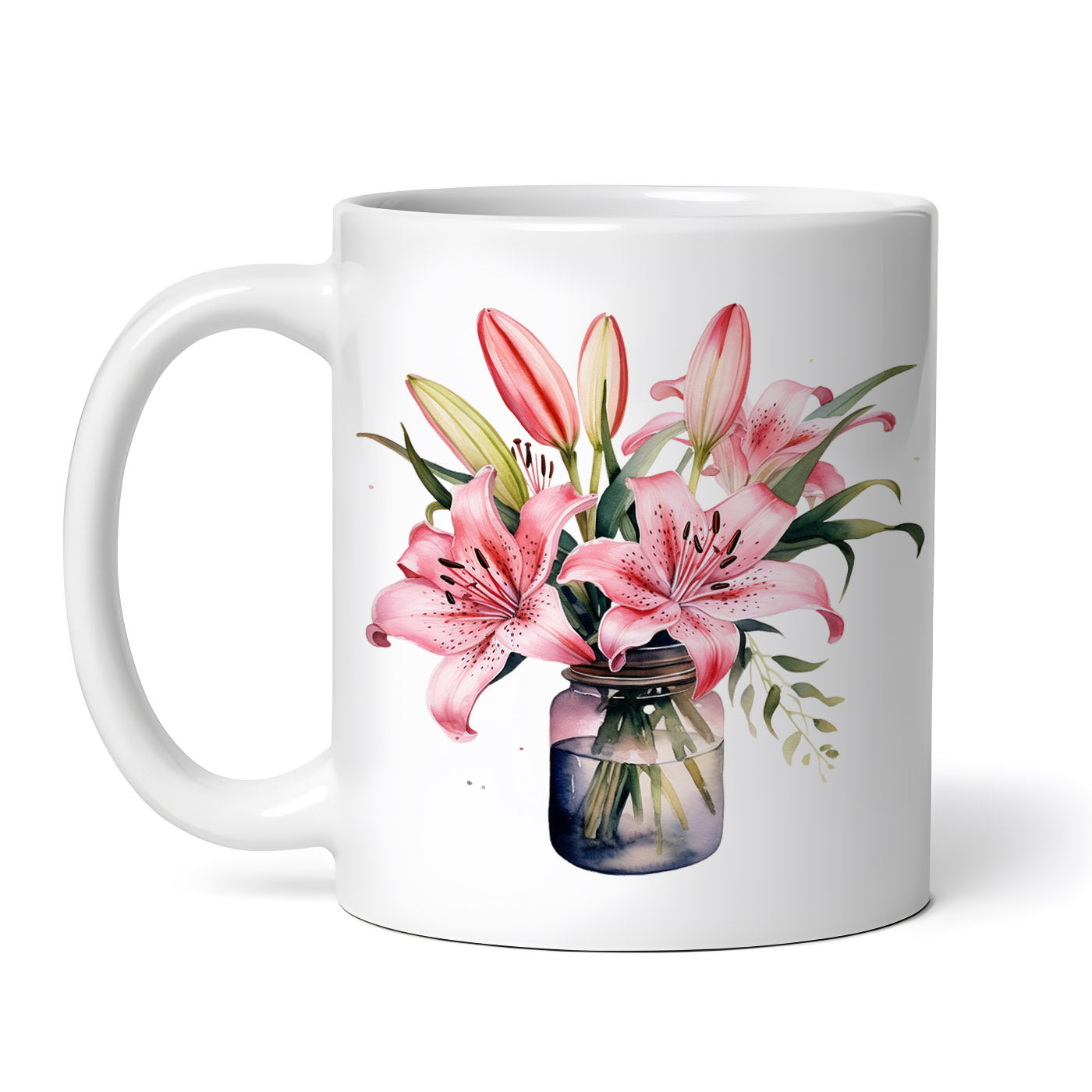 - Cana ceramica, Borcan cu crini, NO2189, 330 ml, Multicolor