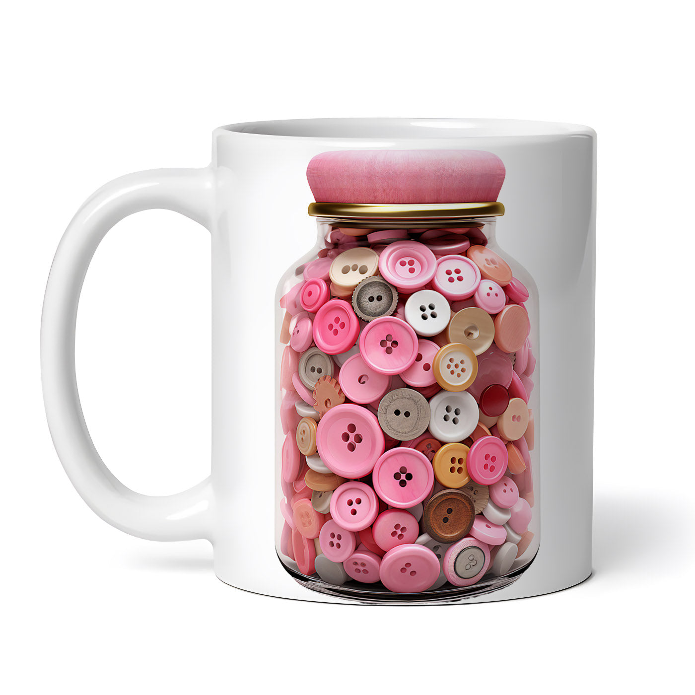 - Cana ceramica, Borcan cu nasturi roz, NO3670, 330 ml, Multicolor