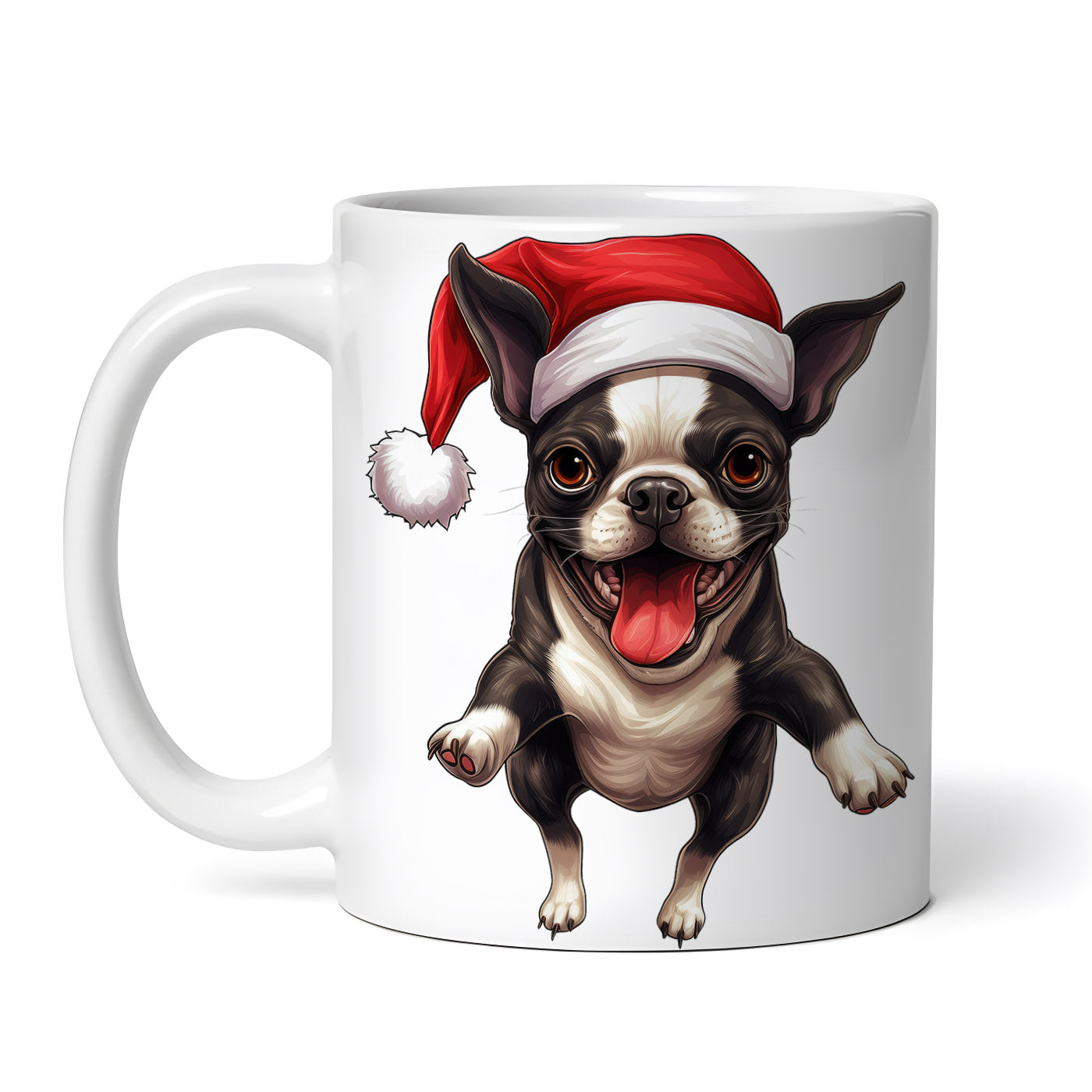- Cana ceramica, Boston Terrier cu caciula de craciun, NO5400, 330 ml, Multicolor