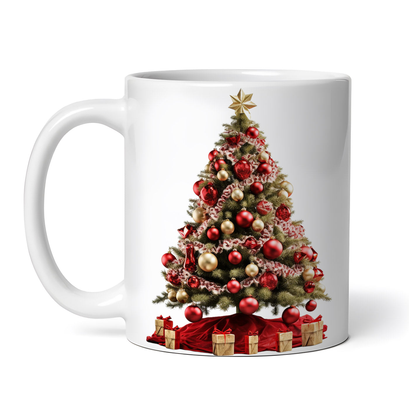 - Cana ceramica, Brad de craciun cu globuri si beteala, NO5214, 330 ml, Multicolor