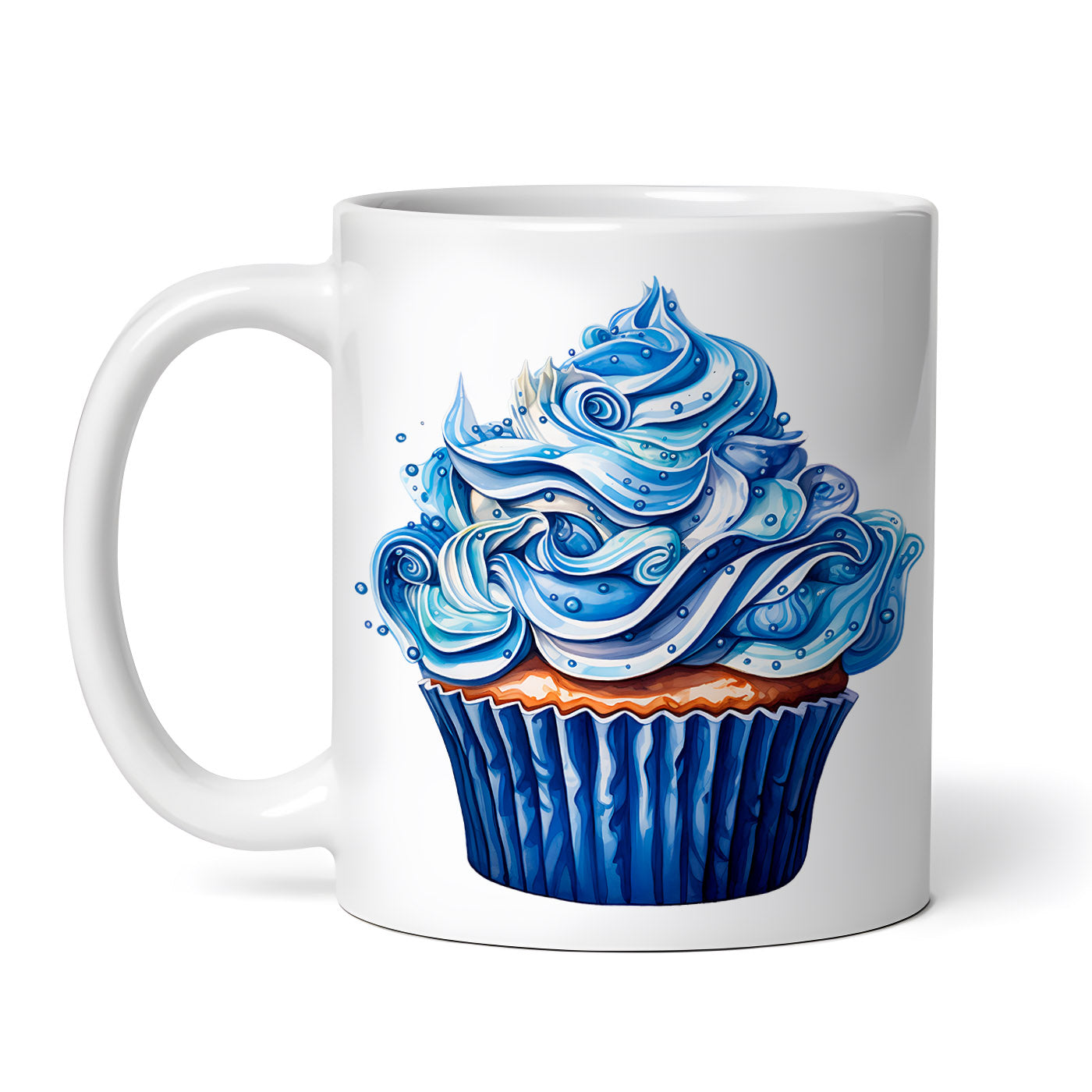 - Cana ceramica, Briosa cu crema si bomboane albastre, NO507, 330 ml, Multicolor