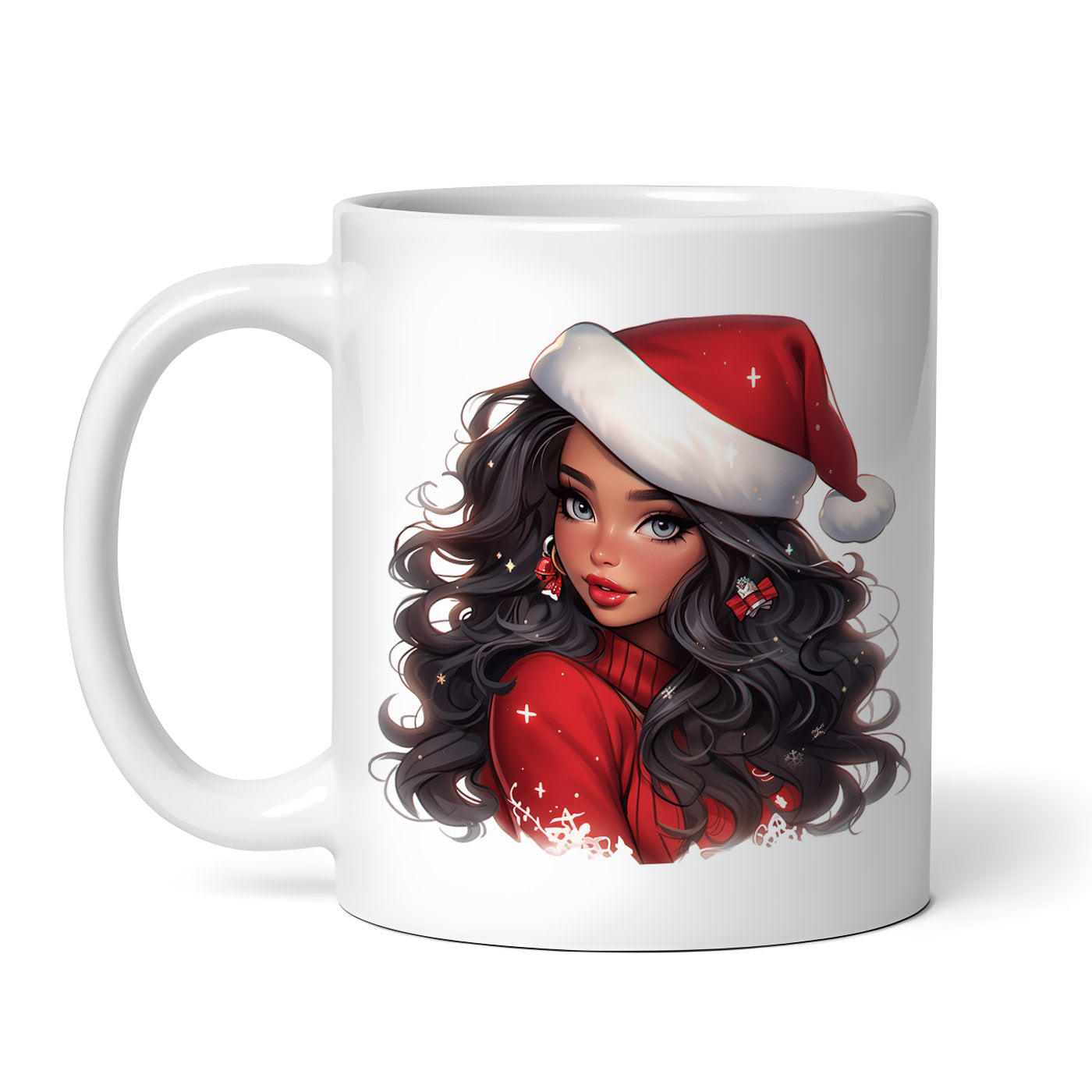 - Cana ceramica, Bruneta cu ochi albastri de craciun, NO827, 330 ml, Multicolor