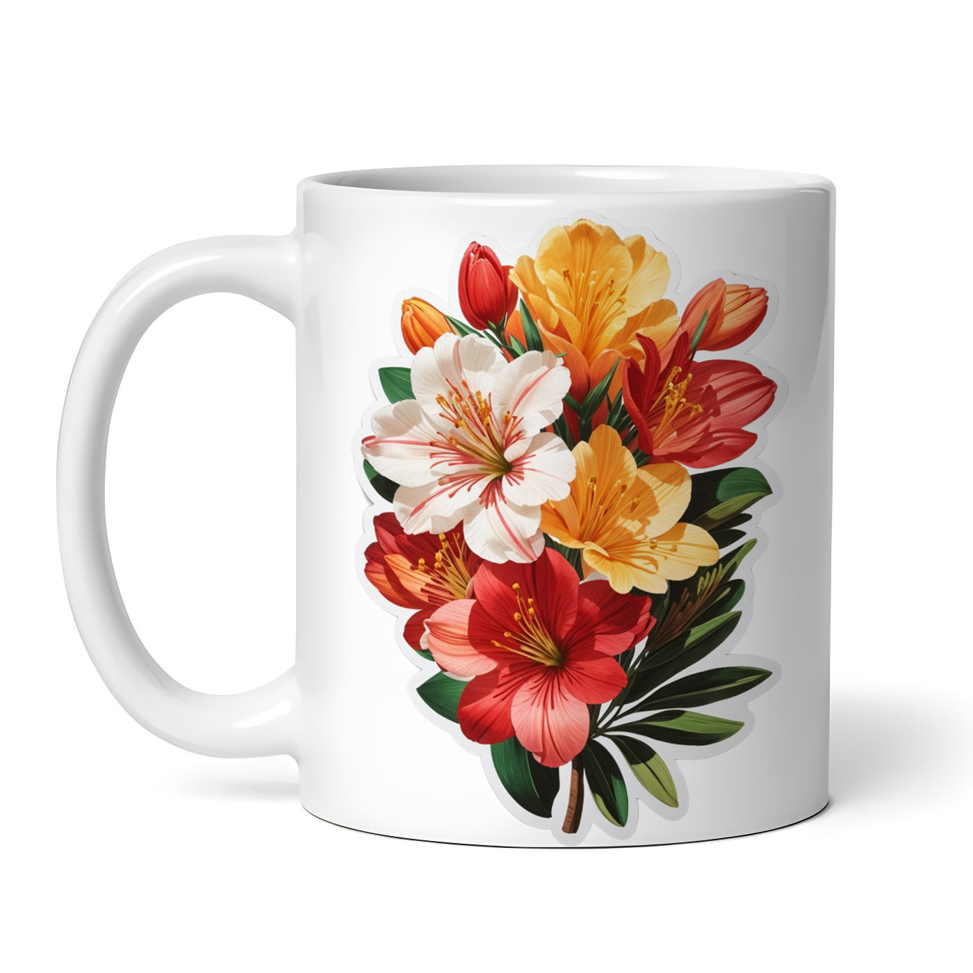 - Cana ceramica, Buchet de astromeria cu frunze, NO7613, 330 ml, Multicolor