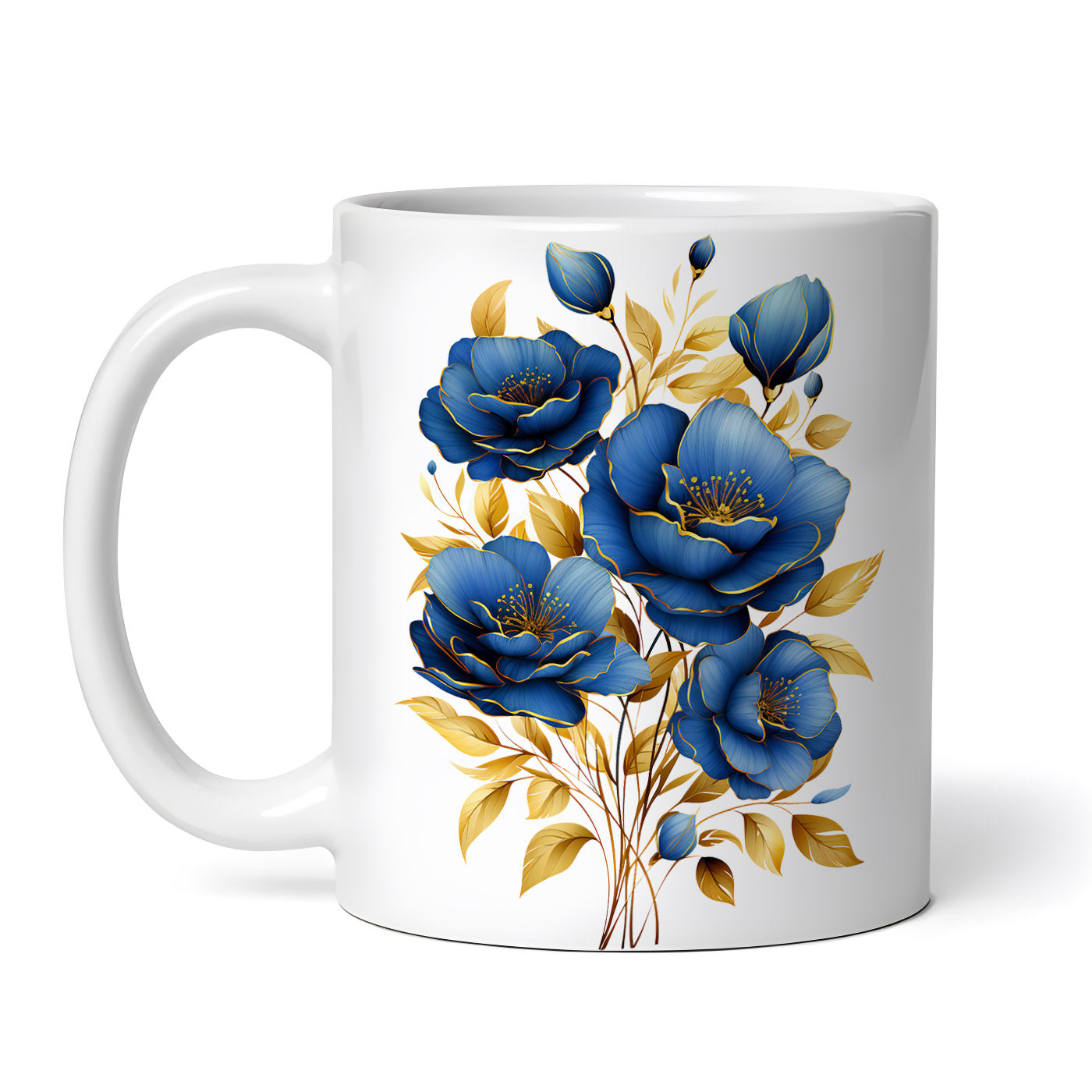 - Cana ceramica, Buchet de flori albastre, NO1233, 330 ml, Multicolor