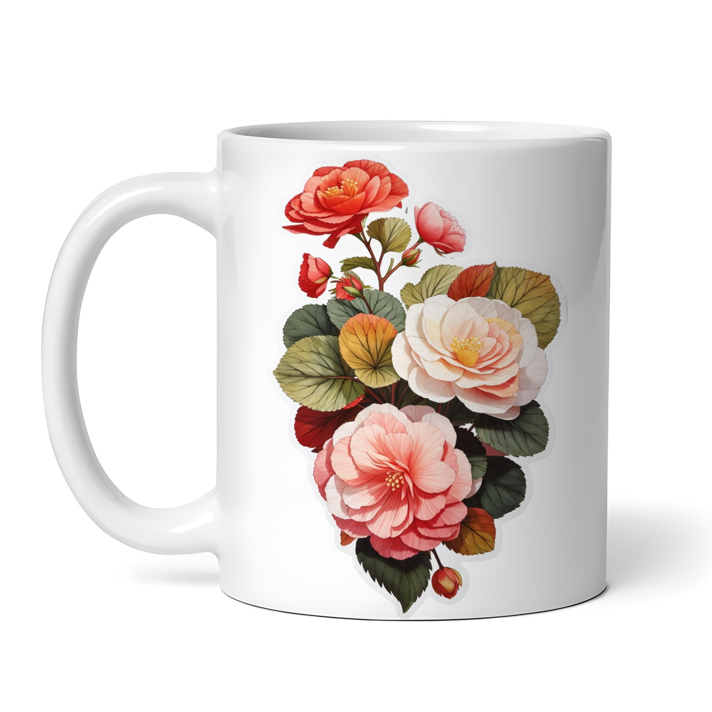 - Cana ceramica, Buchet de flori begonia, NO7774, 330 ml, Multicolor