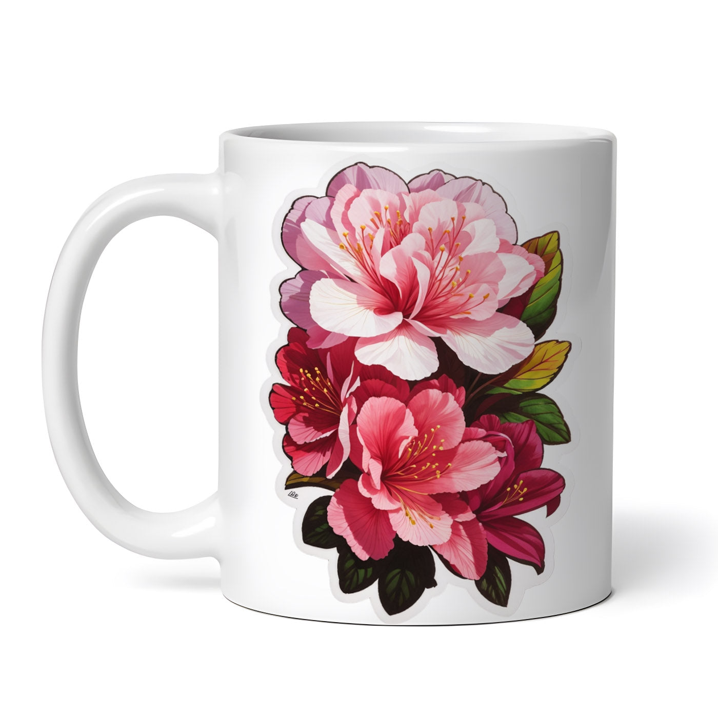 - Cana ceramica, Buchet de flori de azalea, NO7728, 330 ml, Multicolor
