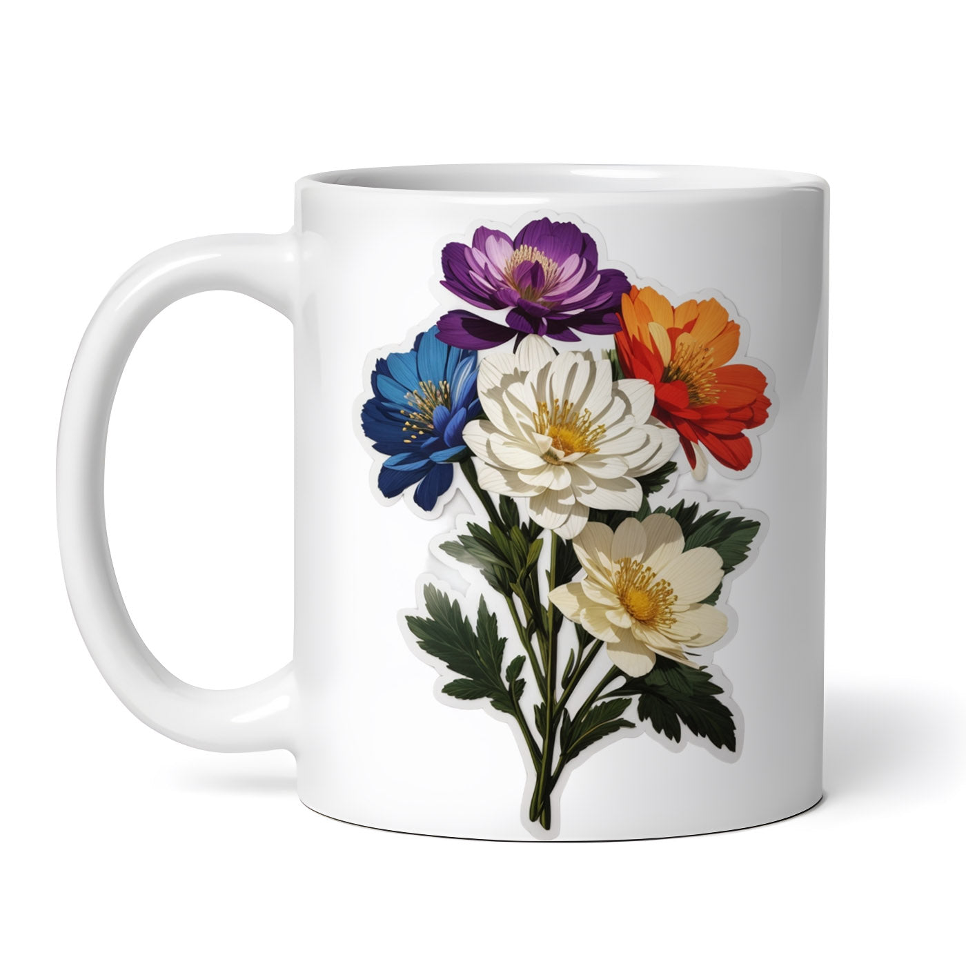 - Cana ceramica, Buchet de flori de negrilica, NO8615, 330 ml, Multicolor