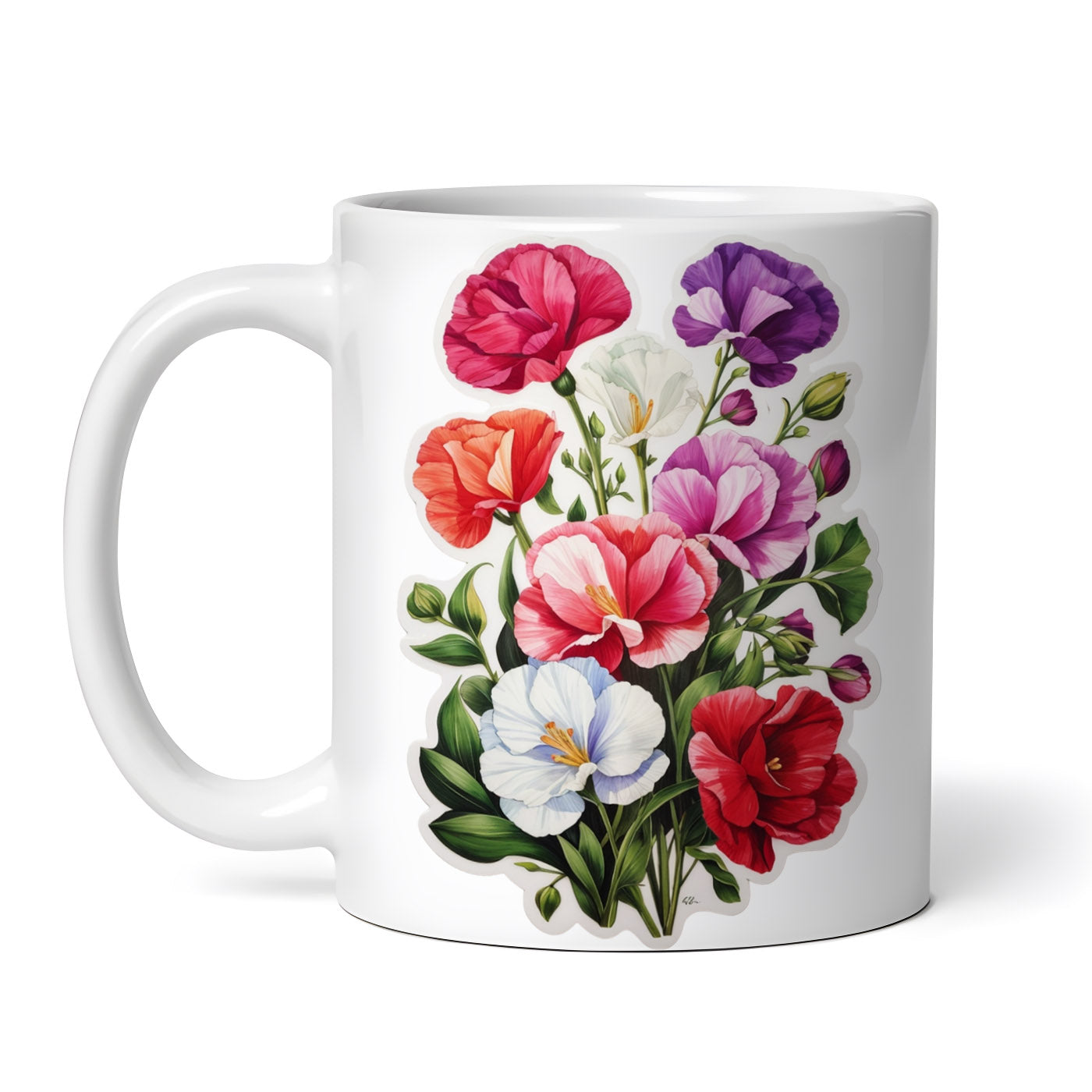 - Cana ceramica, Buchet de flori de Sweet Pea, NO8938, 330 ml, Multicolor