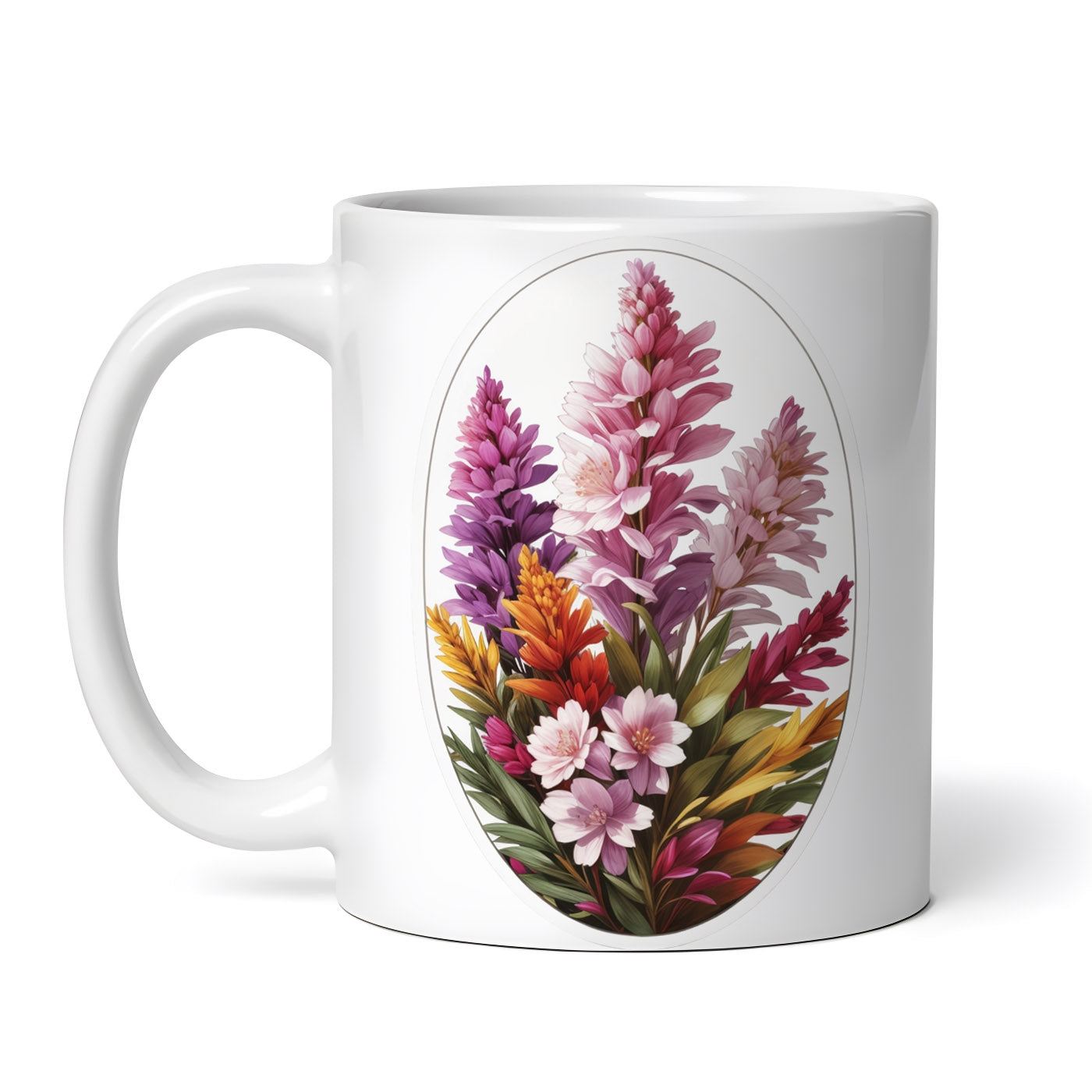 - Cana ceramica, Buchet de flori heather, NO8309, 330 ml, Multicolor