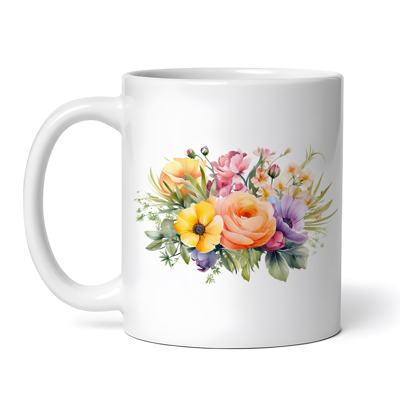 - Cana ceramica, Buchet de flori Primavara, NO2248, 330 ml, Multicolor