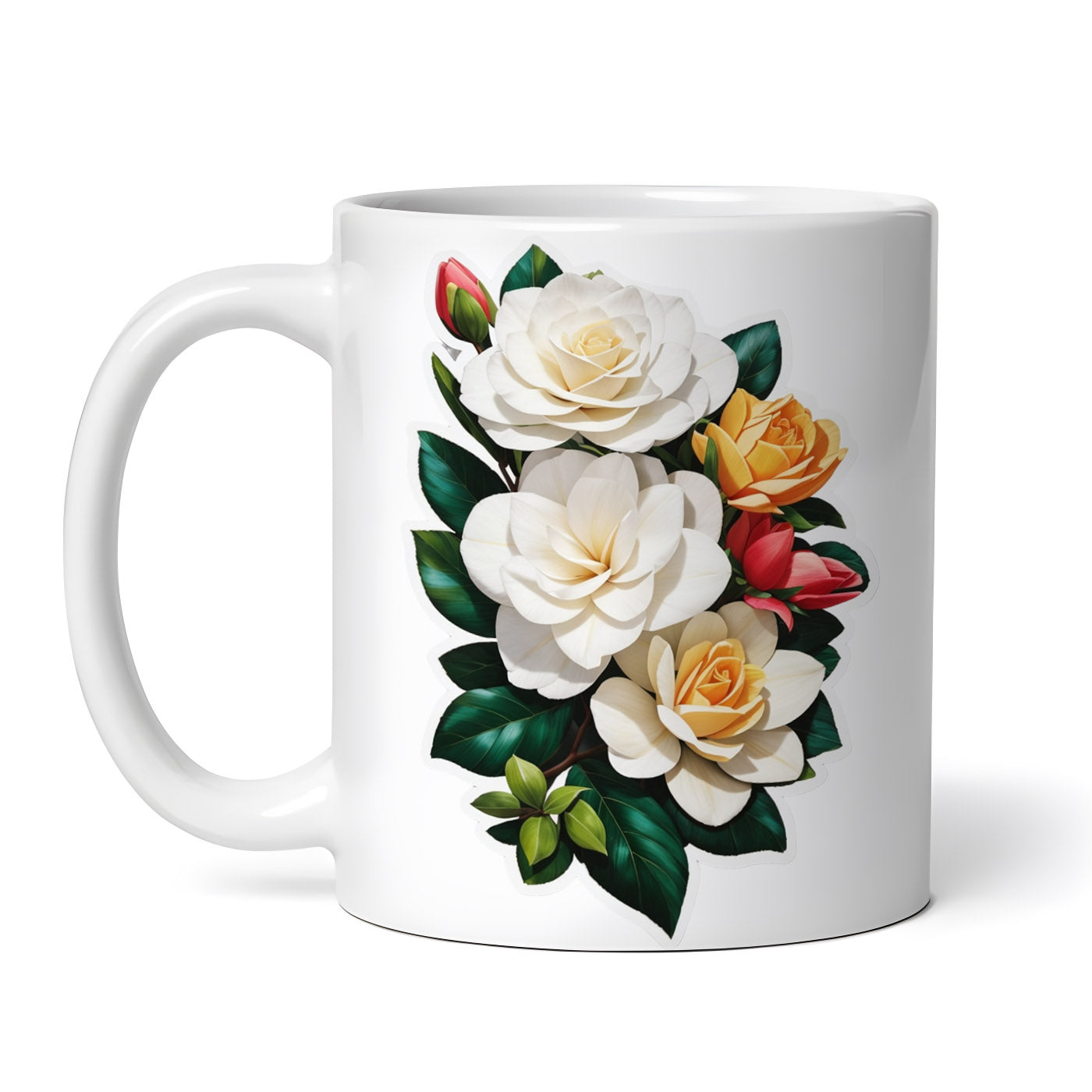 - Cana ceramica, Buchet de gardenia, NO8206, 330 ml, Multicolor