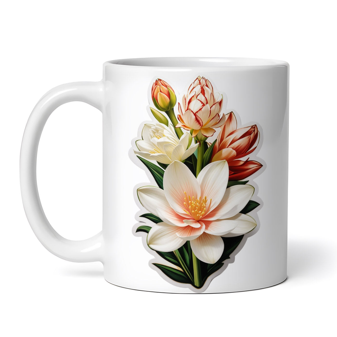 - Cana ceramica, Buchet de tuberoze, NO8992, 330 ml, Multicolor