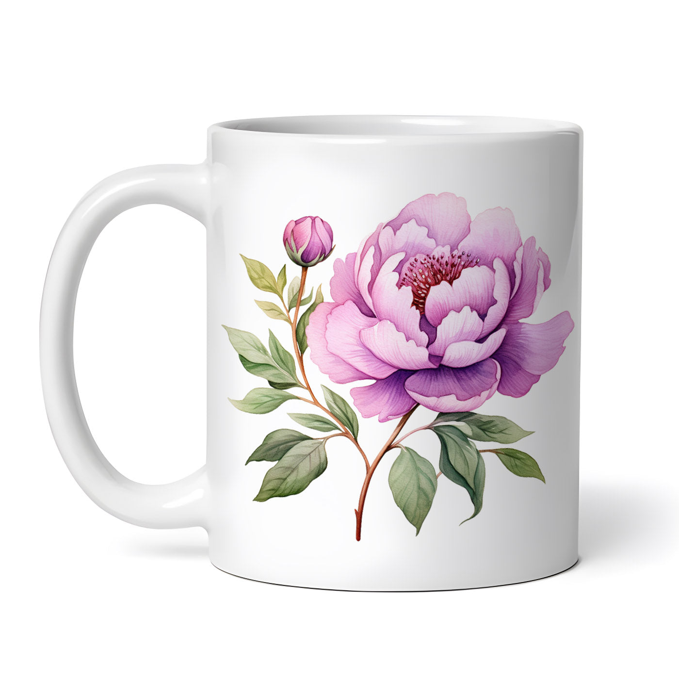 - Cana ceramica, Bujor roz cu boboc, NO6079, 330 ml, Multicolor