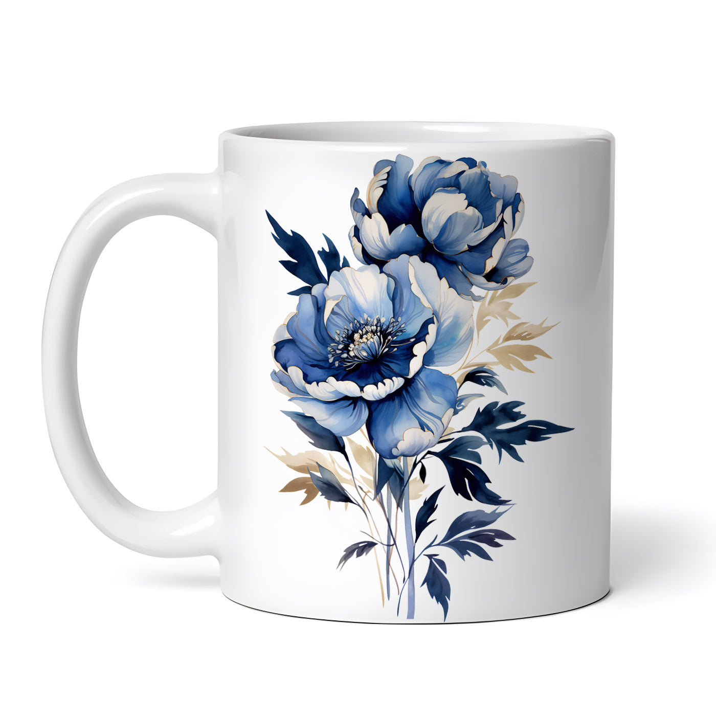 - Cana ceramica, Bujori albastru cu alb, NO4475, 330 ml, Multicolor