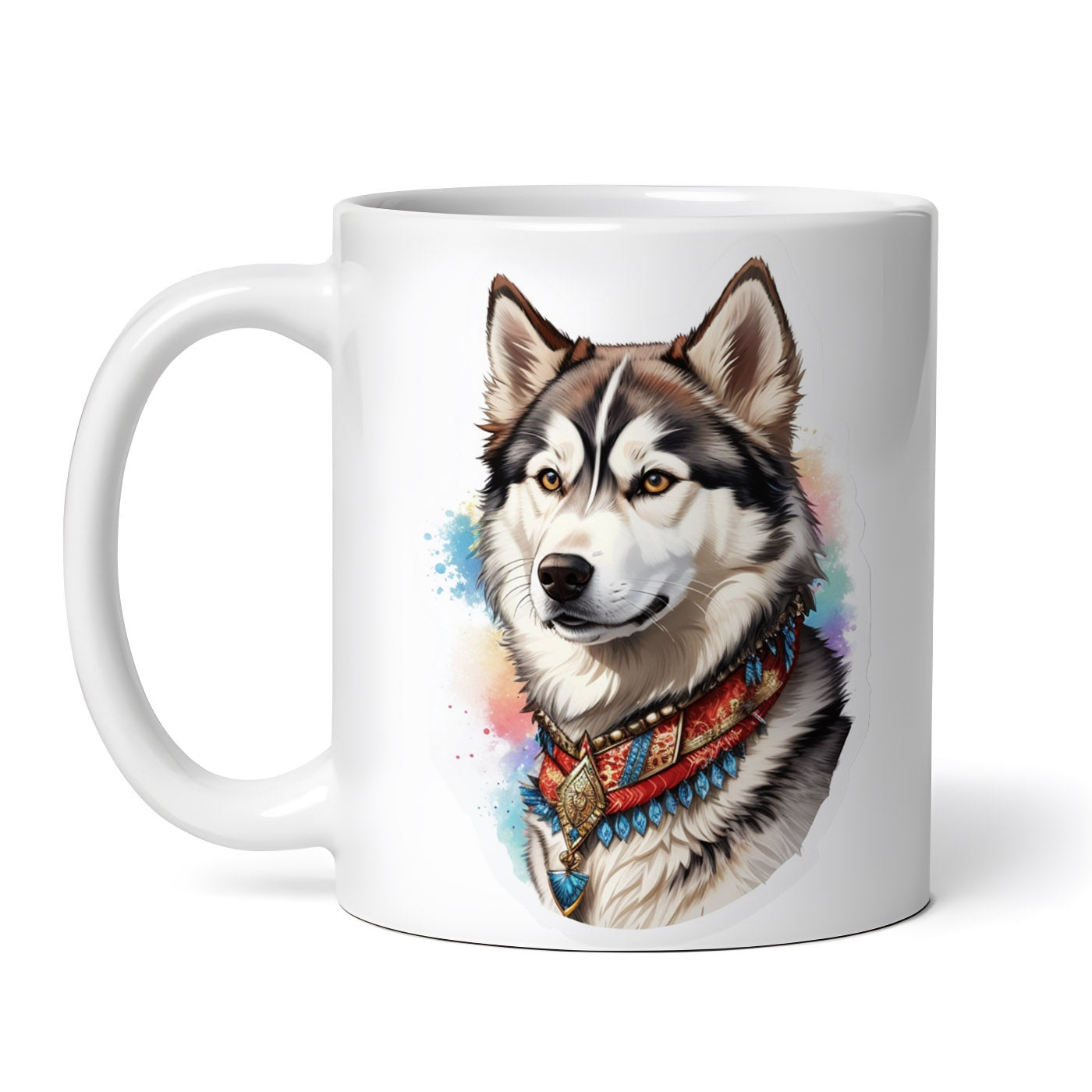 - Cana ceramica, Caine Husky siberian cu zgarda, NO8891, 330 ml, Multicolor