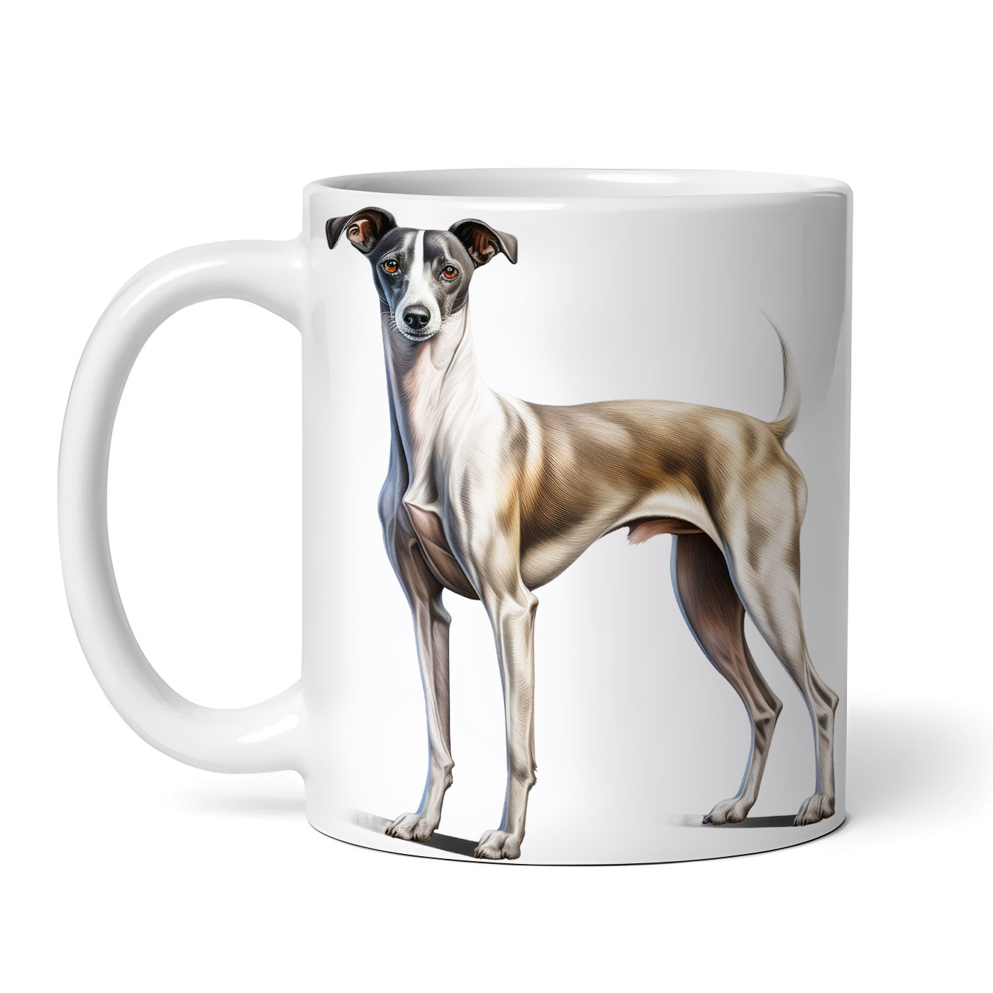 - Cana ceramica, Caine Whippet cu cap negru, NO1818, 330 ml, Multicolor