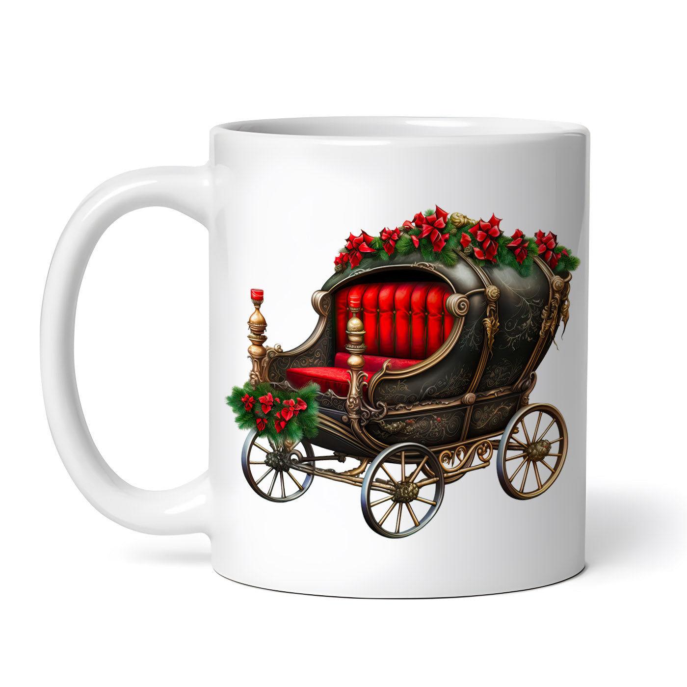 - Cana ceramica, Caleasca neagra cu scaun tapitat rosu, NO447, 330 ml, Multicolor