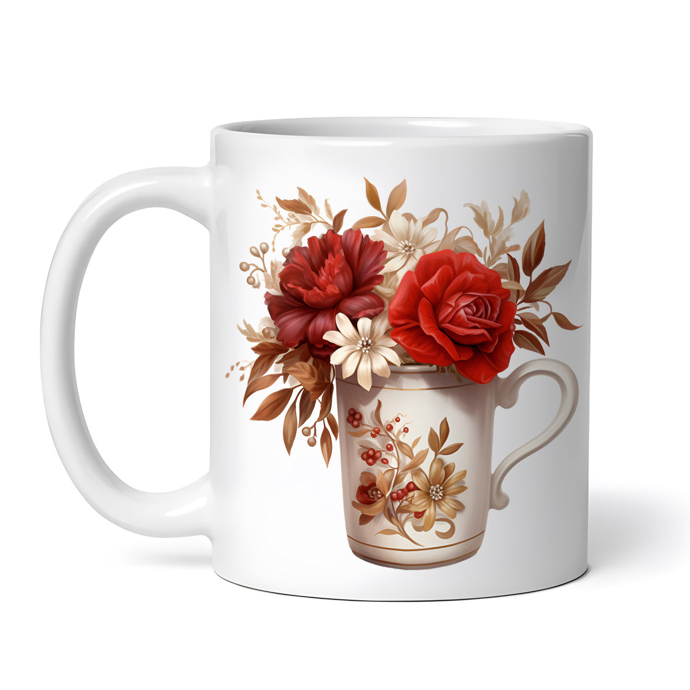 - Cana ceramica, Cana cu flori, NO2766, 330 ml, Multicolor