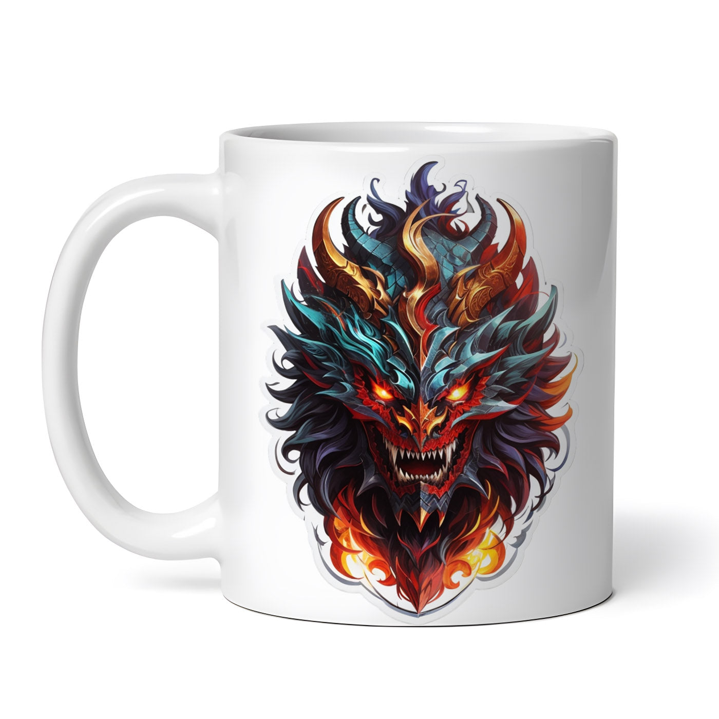 - Cana ceramica, Cap de demon medalion, NO7578, 330 ml, Multicolor
