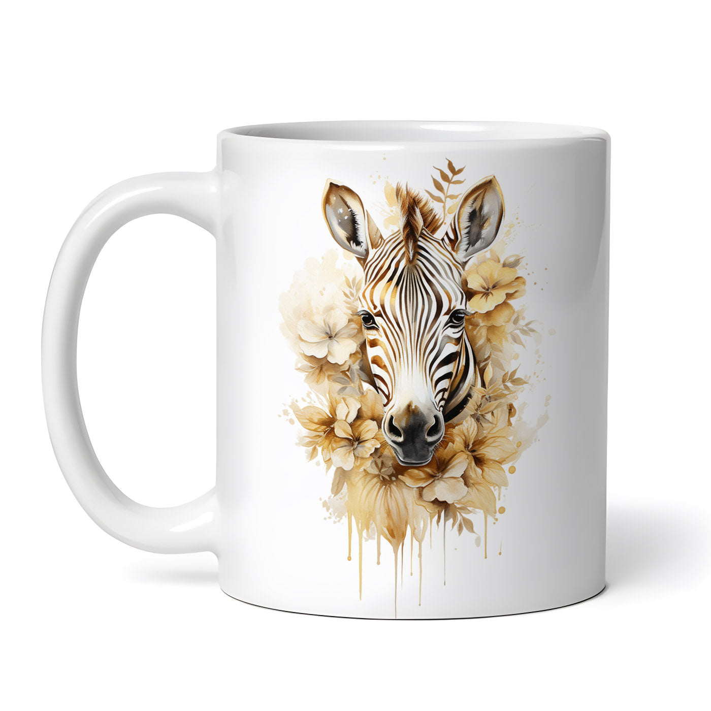 - Cana ceramica, Cap de zebra si flori, NO2638, 330 ml, Multicolor
