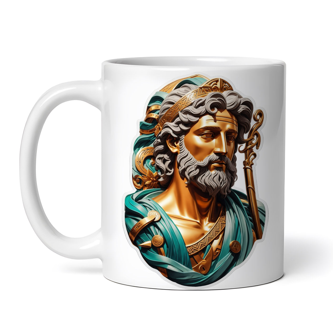 - Cana ceramica, Cap zeul grec Asclepius cu sceptru, NO7691, 330 ml, Multicolor