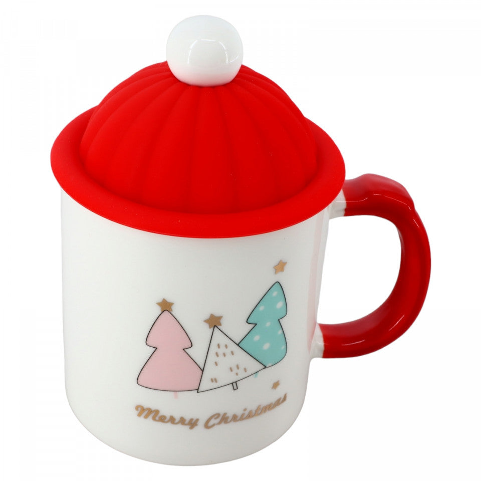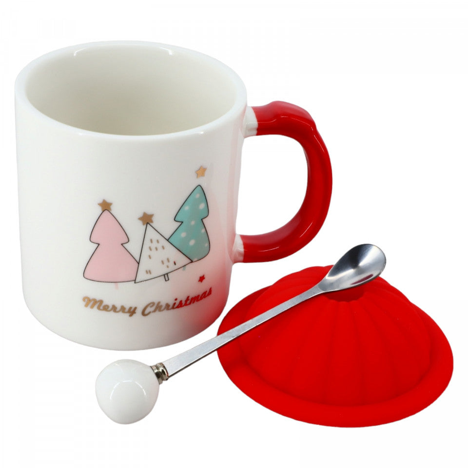Cana ceramica, Capac silicon, Lingurita, Craciun, Mos Craciun, NO489, 350 ml, Alb