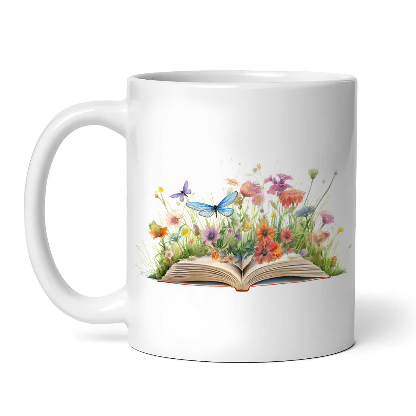 - Cana ceramica, Carte si flori Muna, NO1212, 330 ml, Multicolor